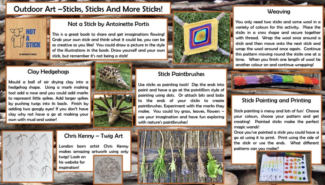 Try one of the outdoor art activities (if the weather is kind) attached to this post.