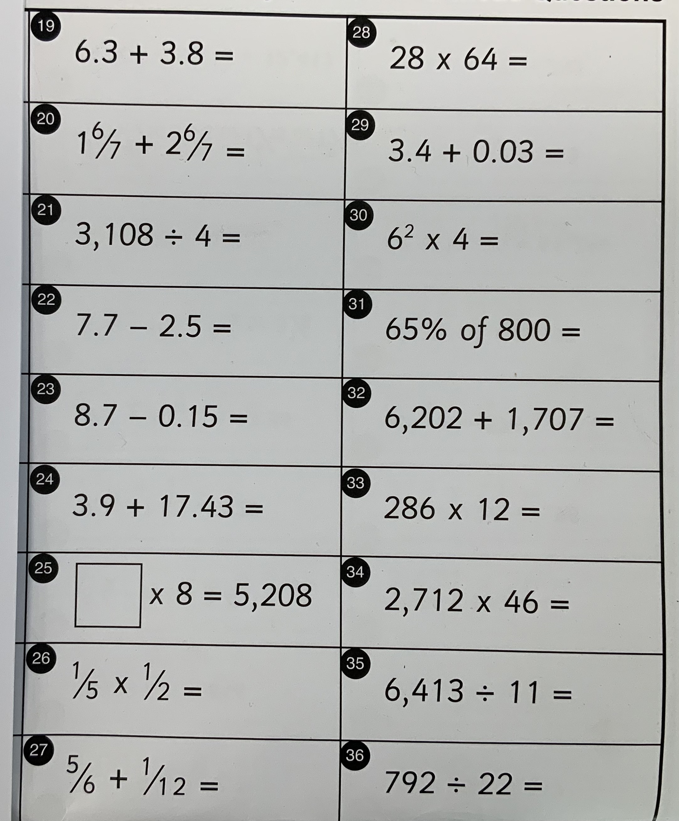 Please open the maths worksheet called ‘Multiplication 2d x 1d’ attached to the blog.