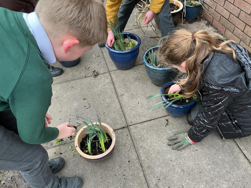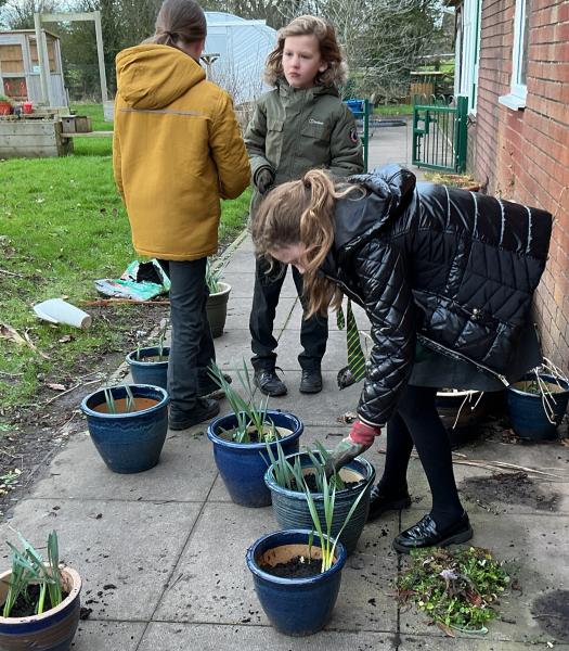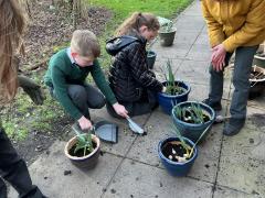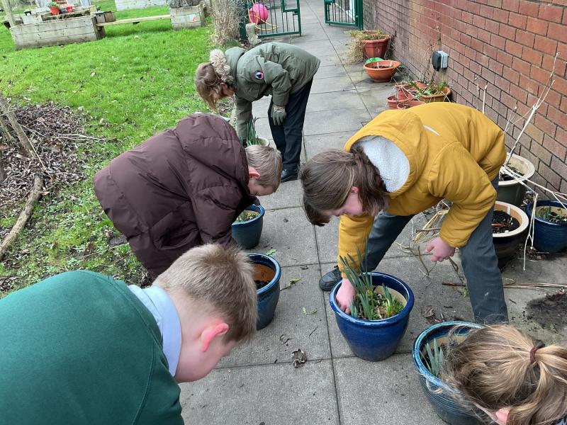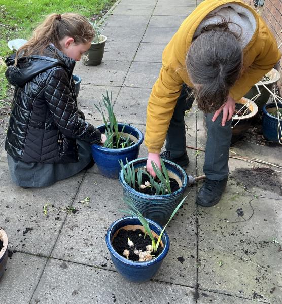 The Eco Team met up to do some work, weeding some pots and planting bulbs, filling up the bird feeders, cleaning the bird bath and checking the Toad Abode.