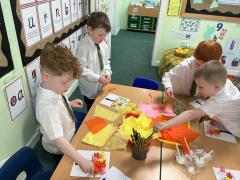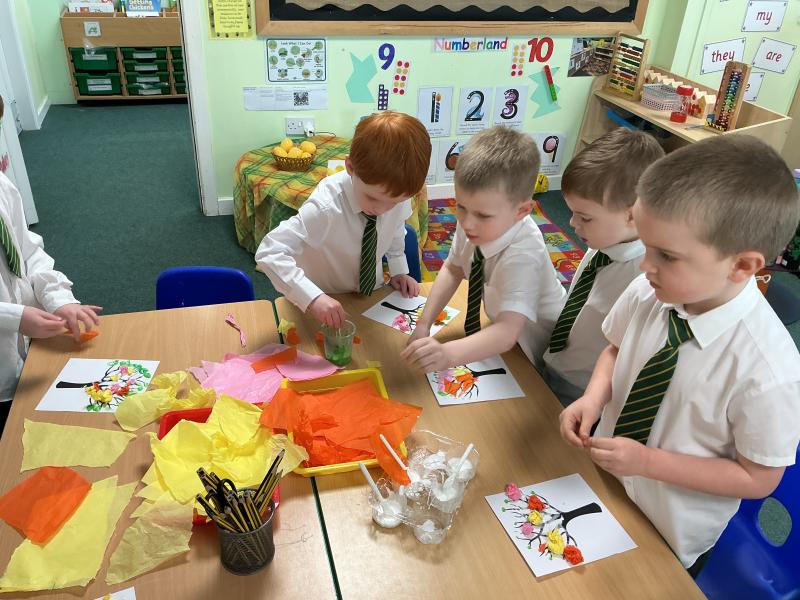 We talked about spring and what we see. We did a walk around our schools grounds to spot signs of spring in our school, and then we made our own spring trees.