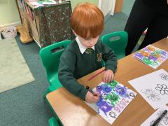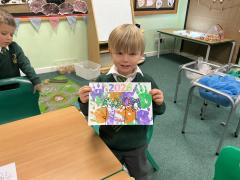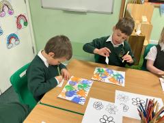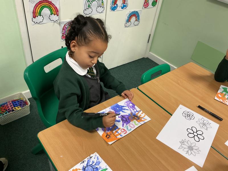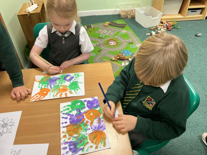 This week we have continued our art project from last week. We drew on top of our hand print art from last week.