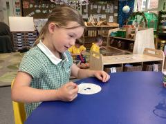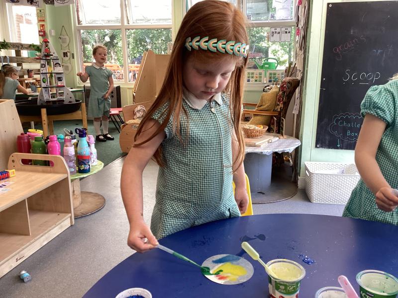 We have been using blotting paper and watercolours and talking about what happens when the paint and water touch the paper.