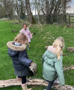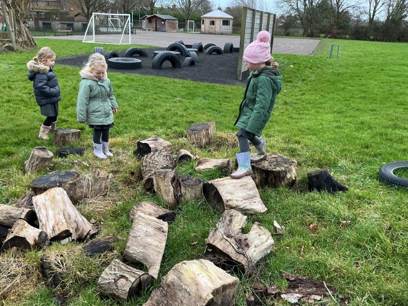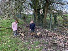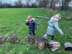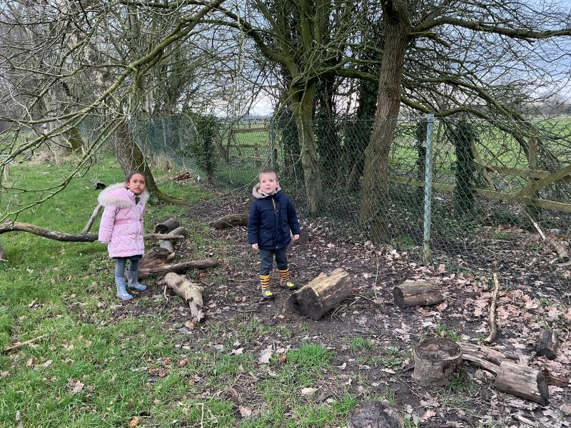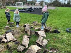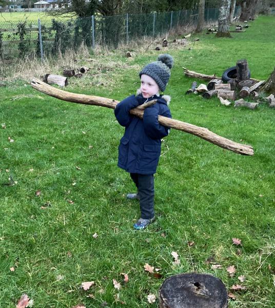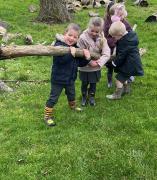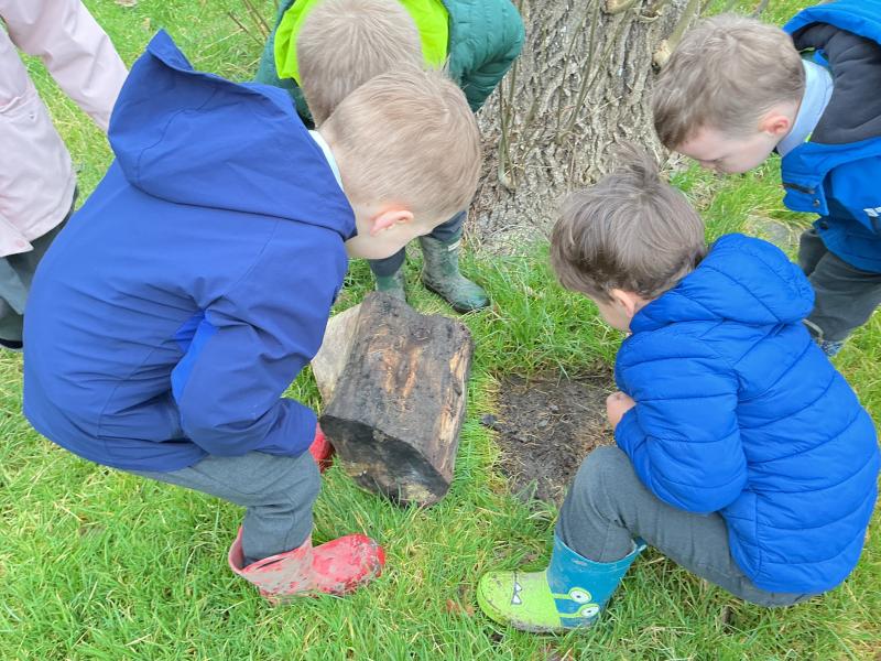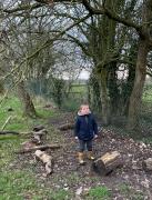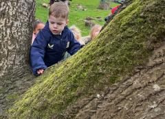 We went to our log circle and had a look for creatures under the logs, did some balancing and climbed trees. We noticed that there are no apples left on the tree but there are a few rotten ones still on the ground underneath it.