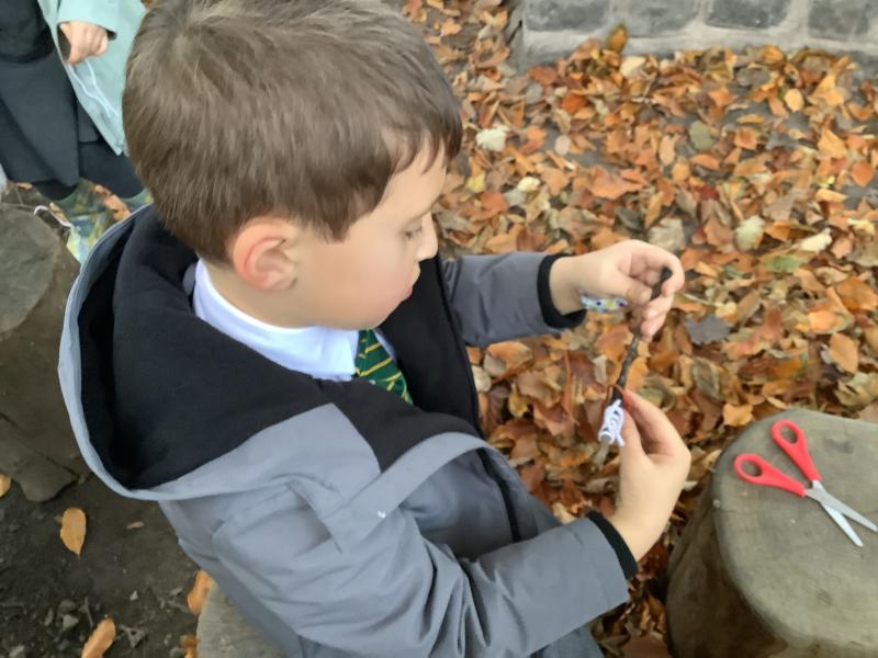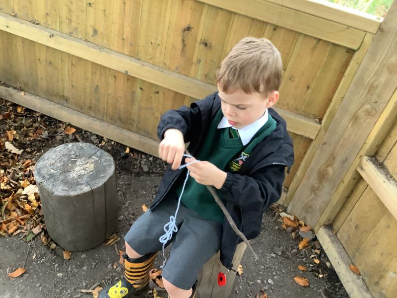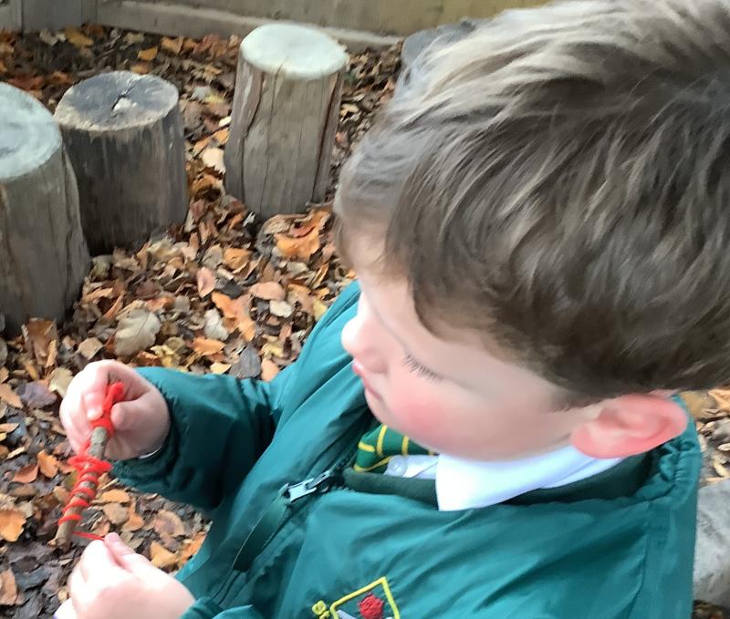 We then had a go at stick wrapping which is really good for developing our fine motor skills.