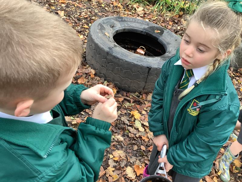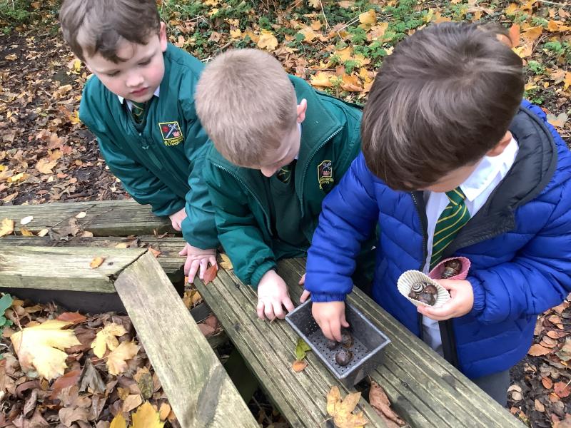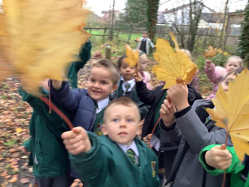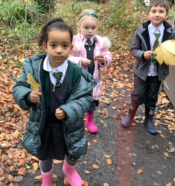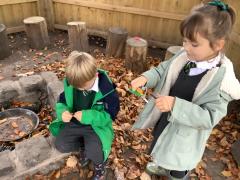 We started our session with a hunting game....find the largest leaf, a brown and red leaf-great observational skills.