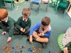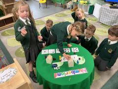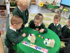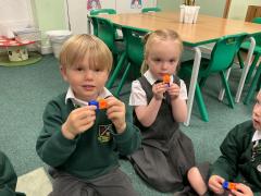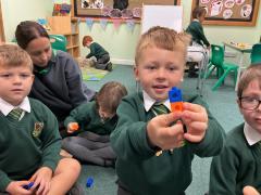 We have been building towers to put in our gardens and we have had a visit from Rosie Posie the problem pixie, who changed our gardens around. We had to make sure we put them right.