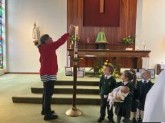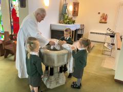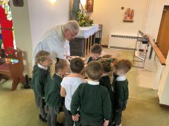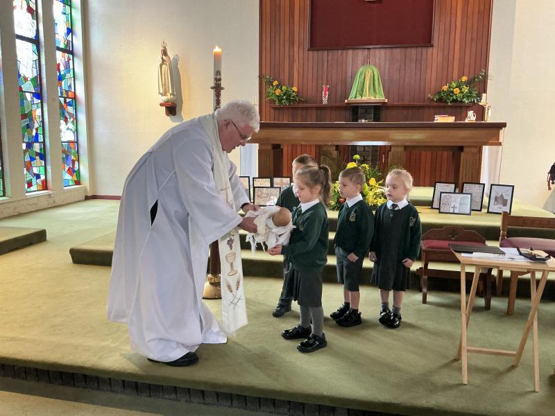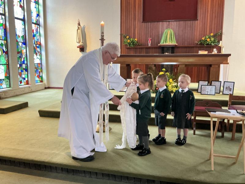 This week we have been to church to visit Father Michael. He did a Baptism on our class doll, to show us every thing that happens.