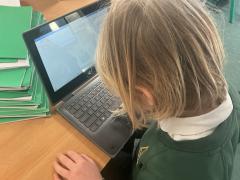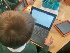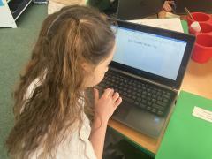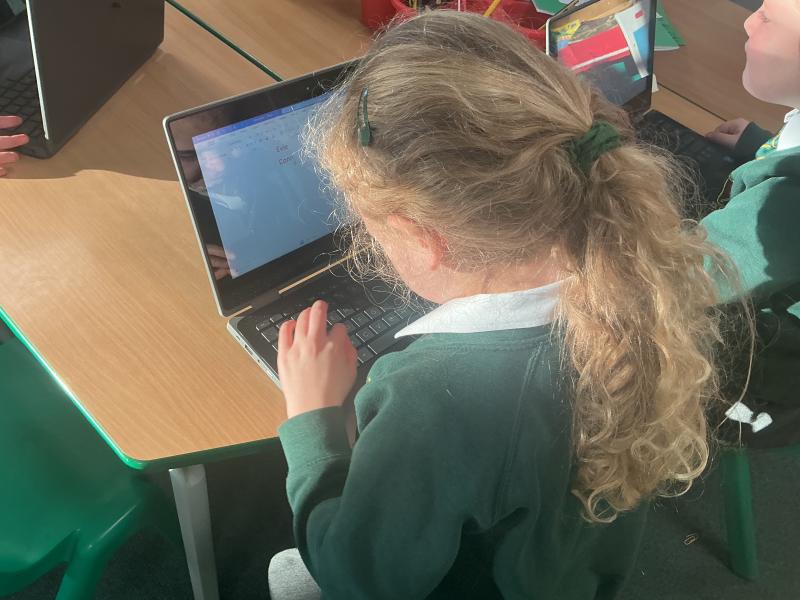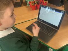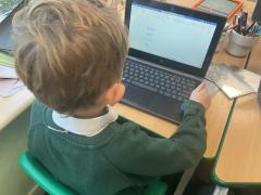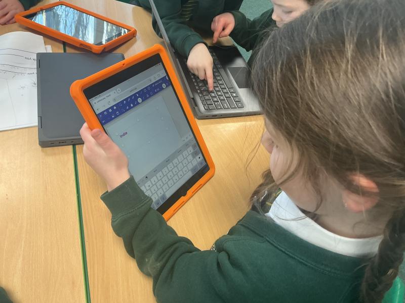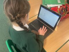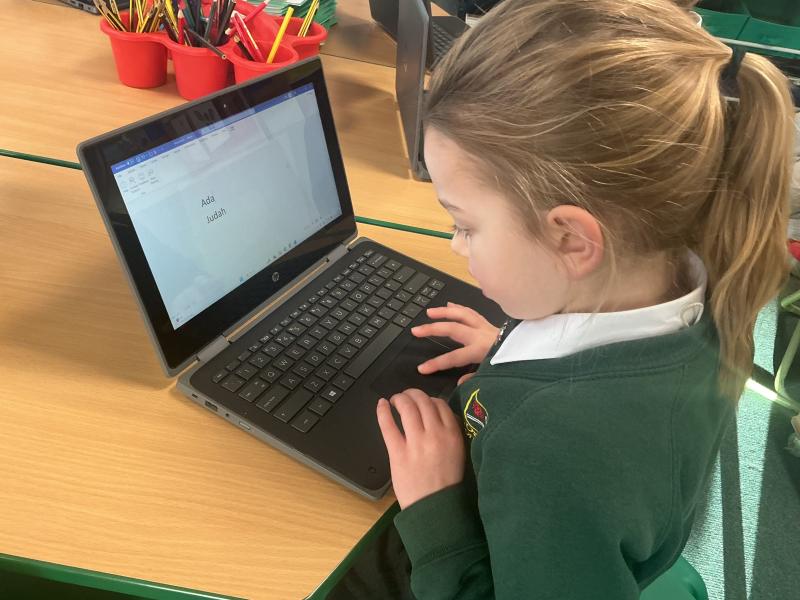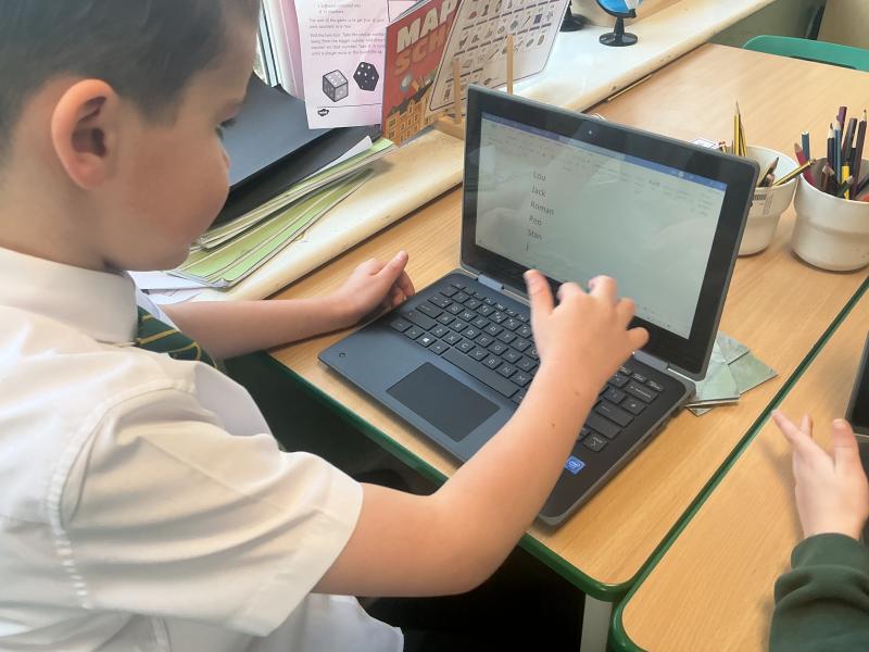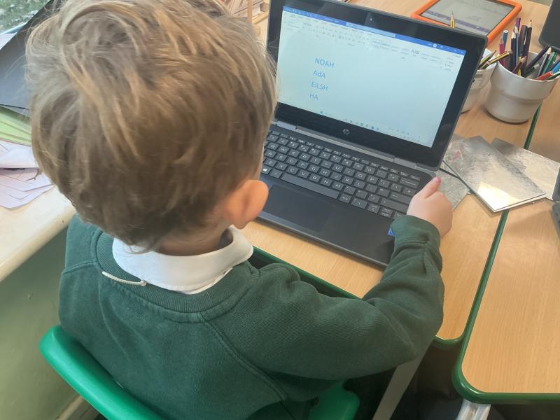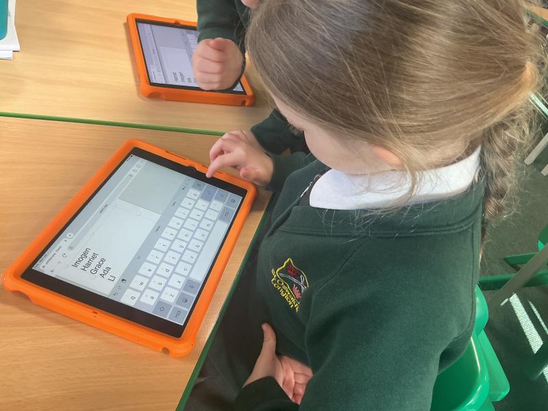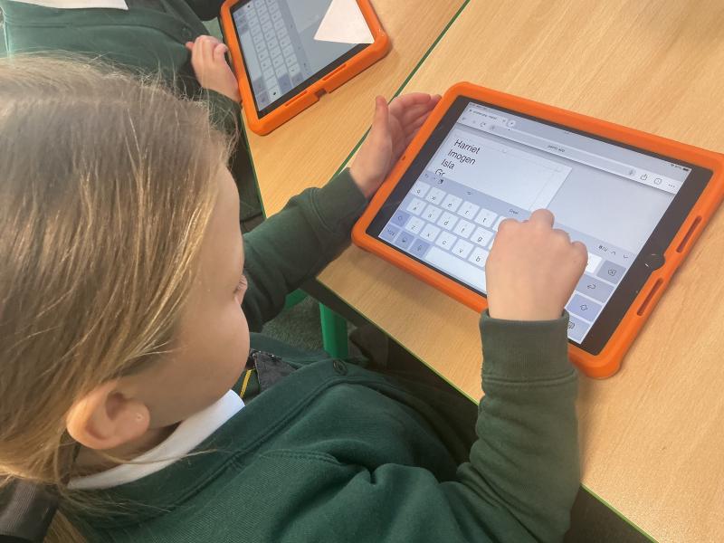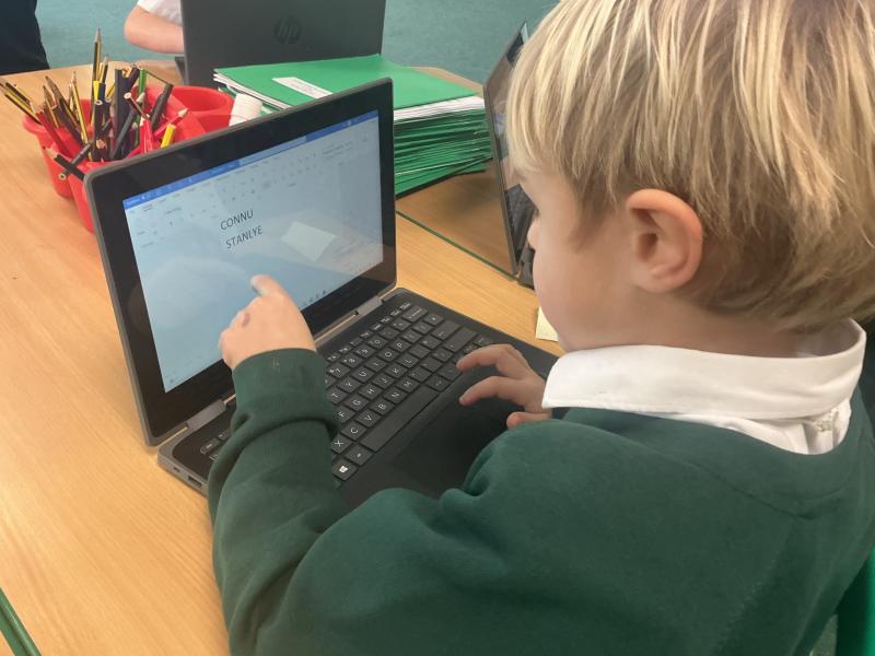 We used both the iPads and laptops to practise typing our name. We then tried to type our friends' names.