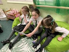 We took our dragon fact files to reception and year 6. We read so confidently!
