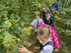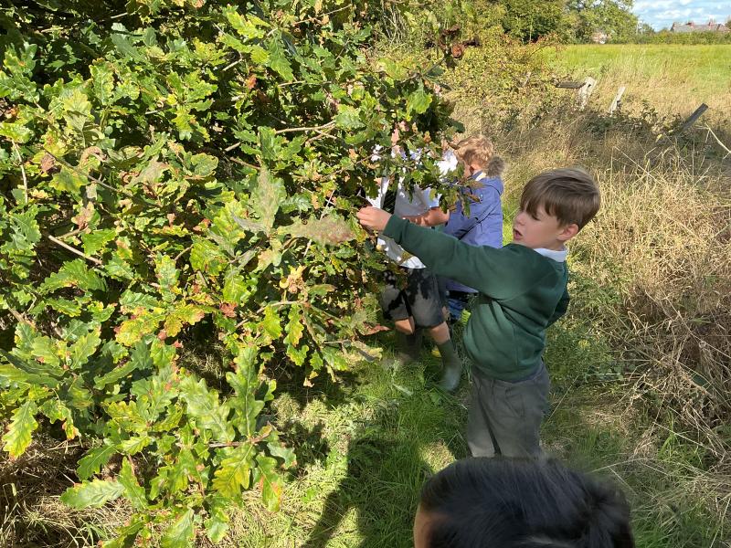 We went for a walk through the gates up to our top field. We found some oak trees and we collected some cups for the fairy.