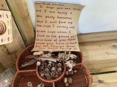 We were so surprised when we got to the lodge, there was a letter waiting for us. It was from the forest fairy, she had no acorn cups for her tea party!