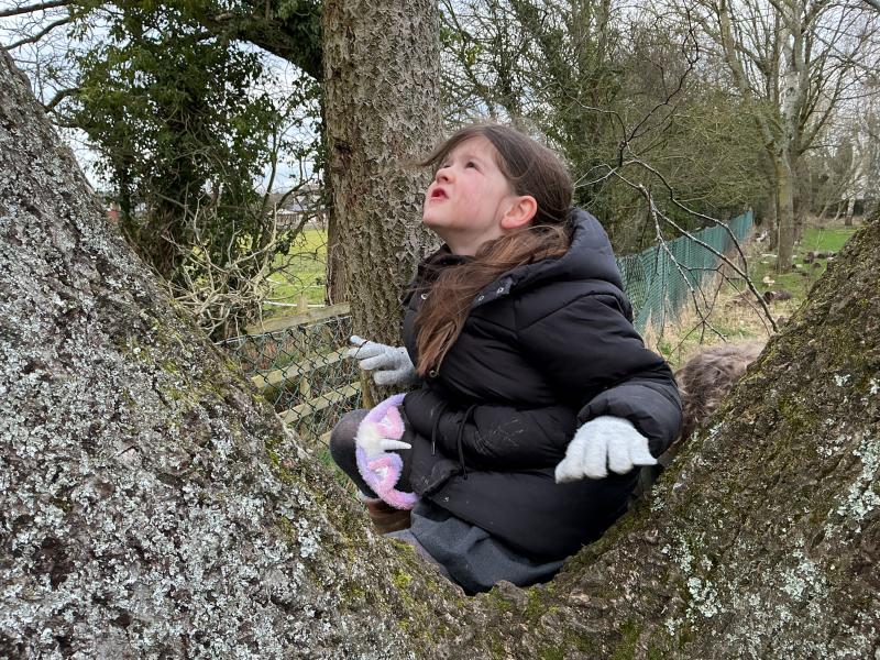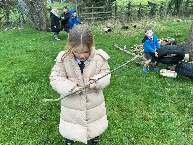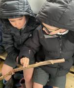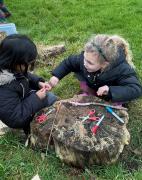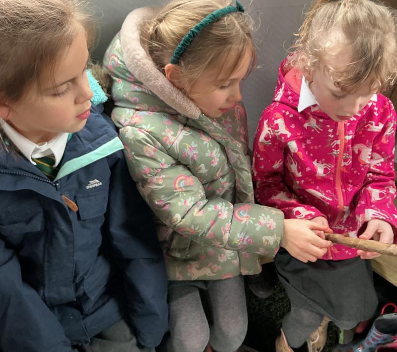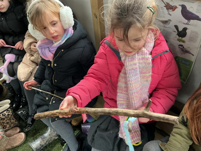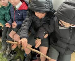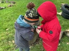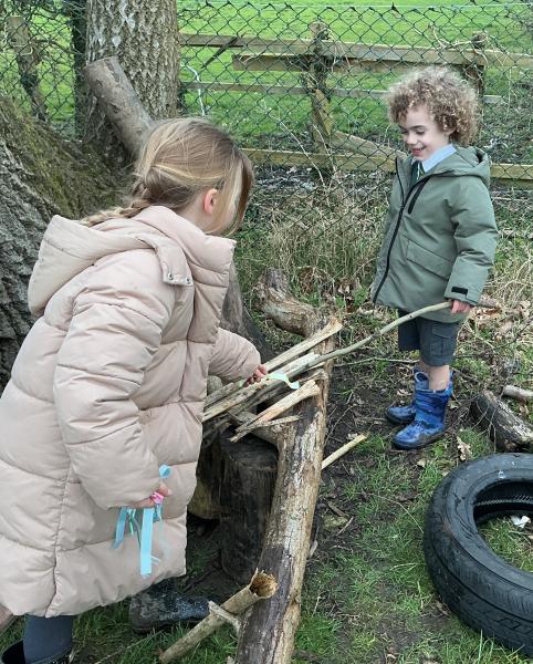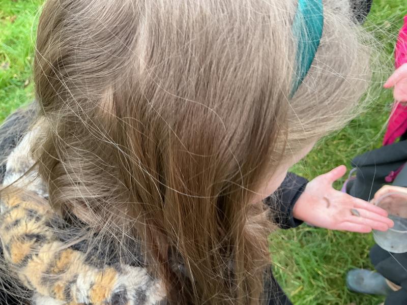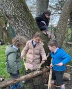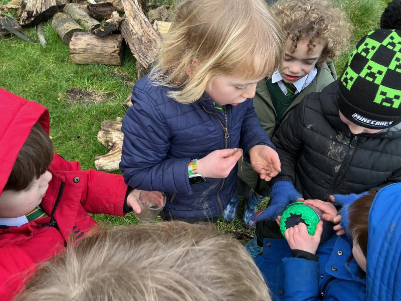 We went for a walk up to our pond. We noticed changes to the trees and that some branches had been blown down.In our log circle area we chose to do some bug hunting, den building, crafting and tree climbing.