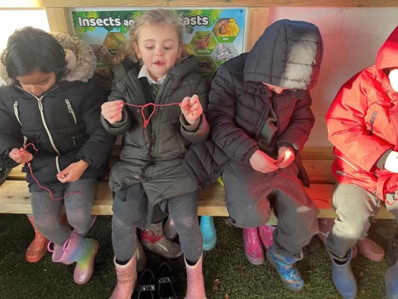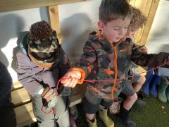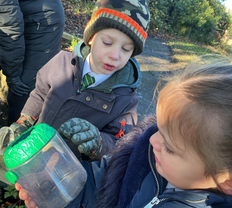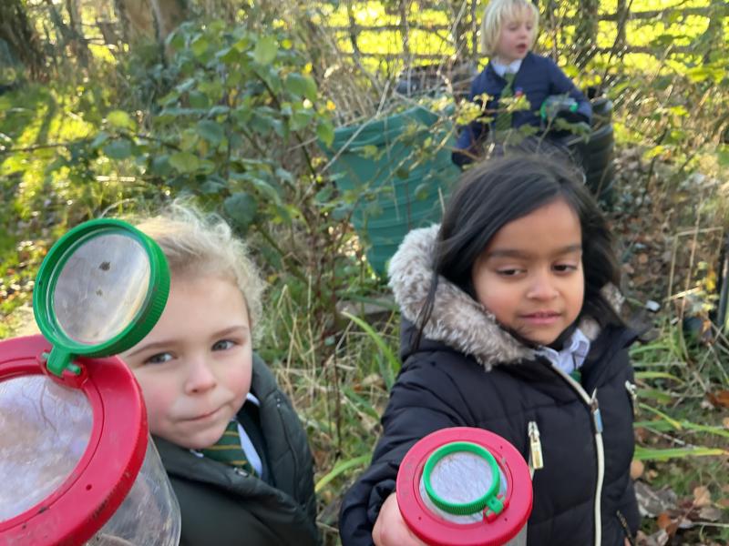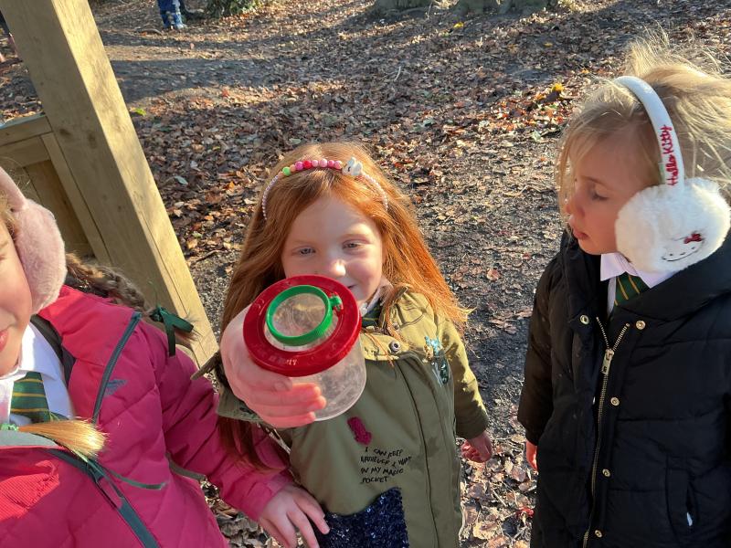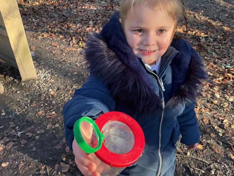 We then went into our nature area. Some of us did some bug hunting and we had some new identification sheets as last week someone asked Mrs Corbett to Google something to find out what it was!
