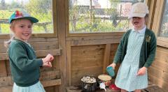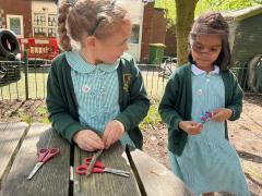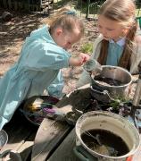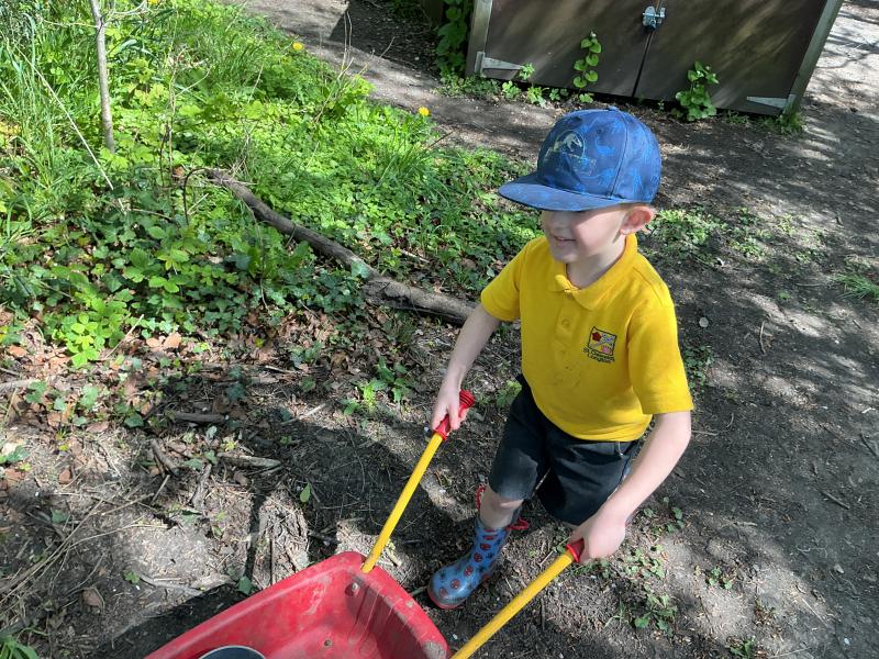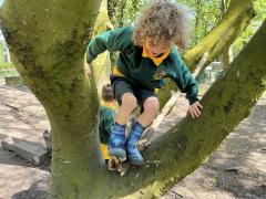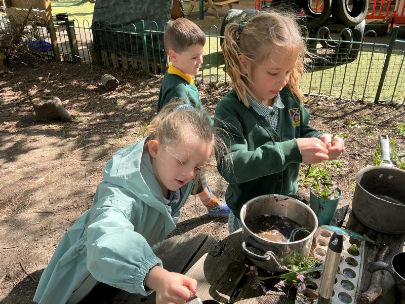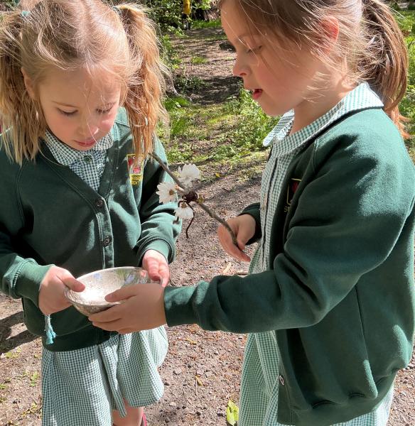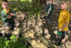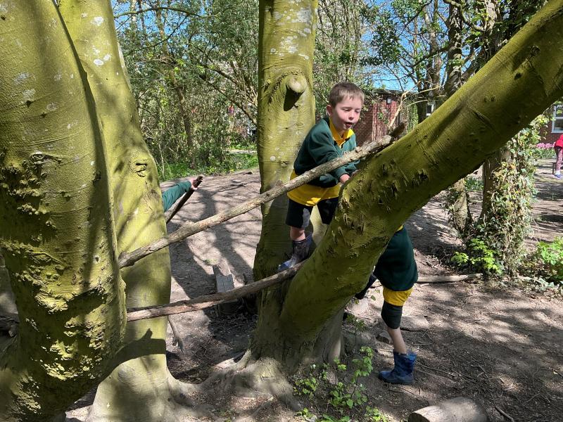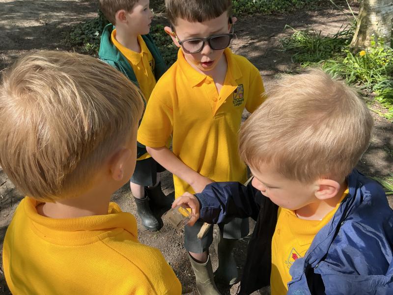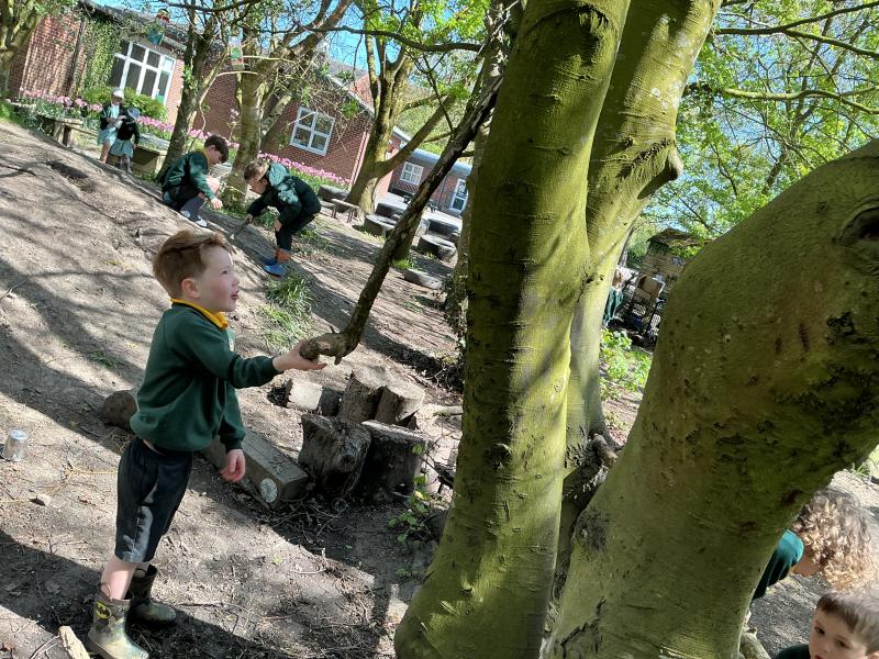 We looked at alll the new growth in the nature area. We looked for mini beasts, climbed trees, made dens and a stream, did some wool crafts and blossom cooking.
