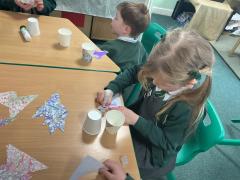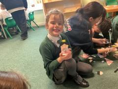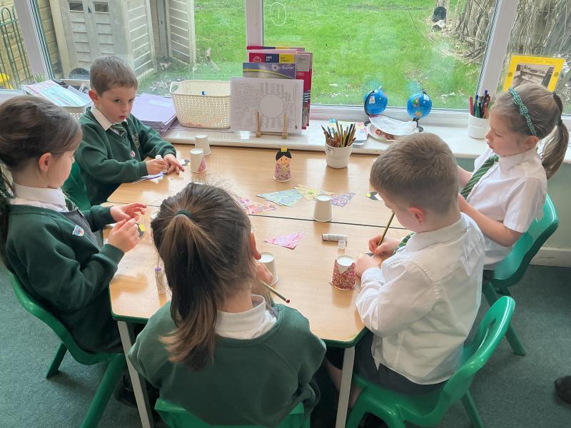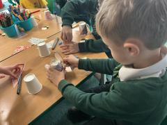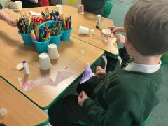 Yuichi and his students taught us about Japanese dolls. We made our own dolls using paper cups.