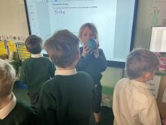 We went around the classroom to find 3D shapes. We found a lot of spheres!
