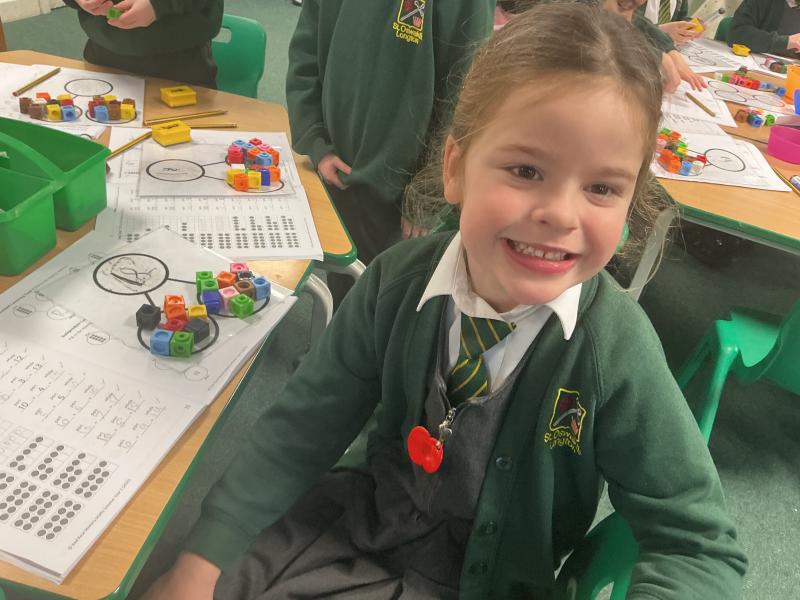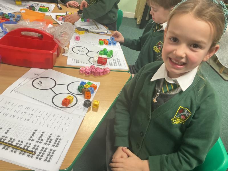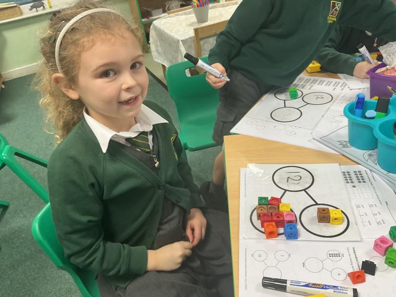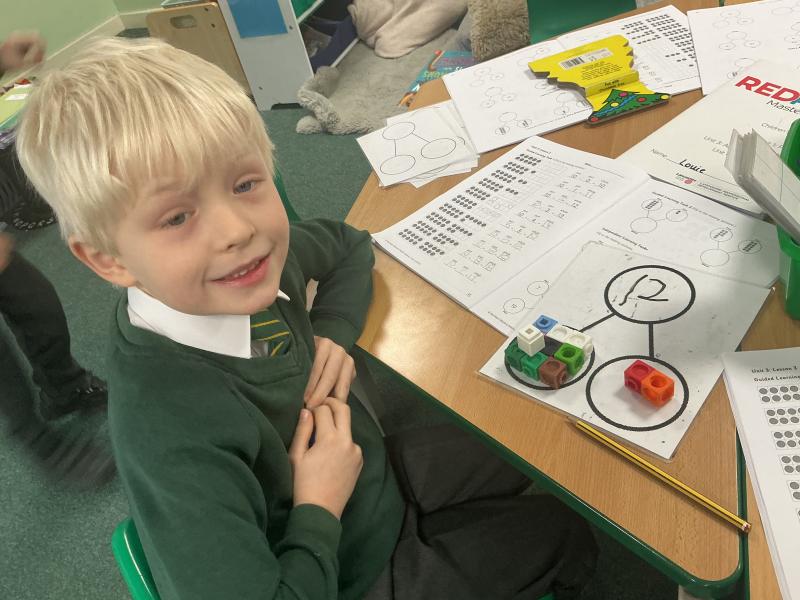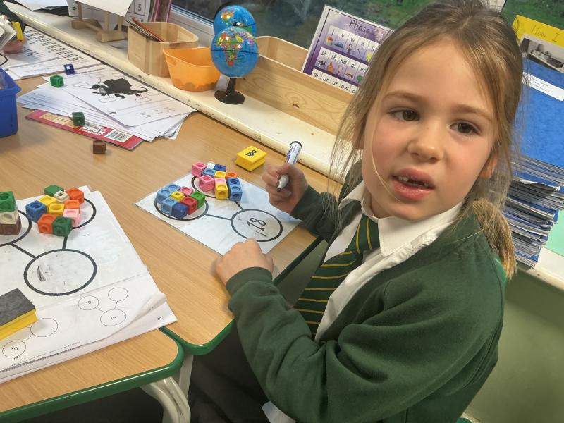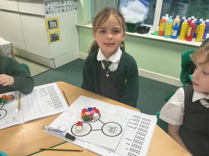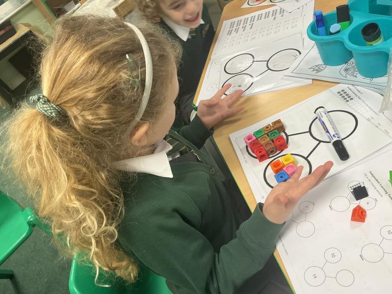 We started to use cubes and part whole models to calculate addition number sentences.