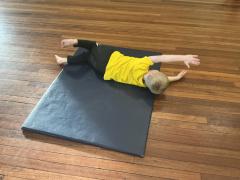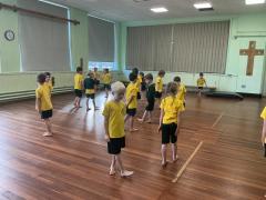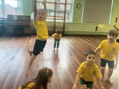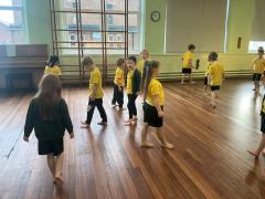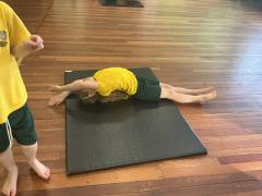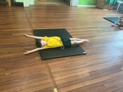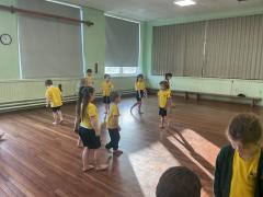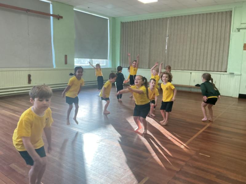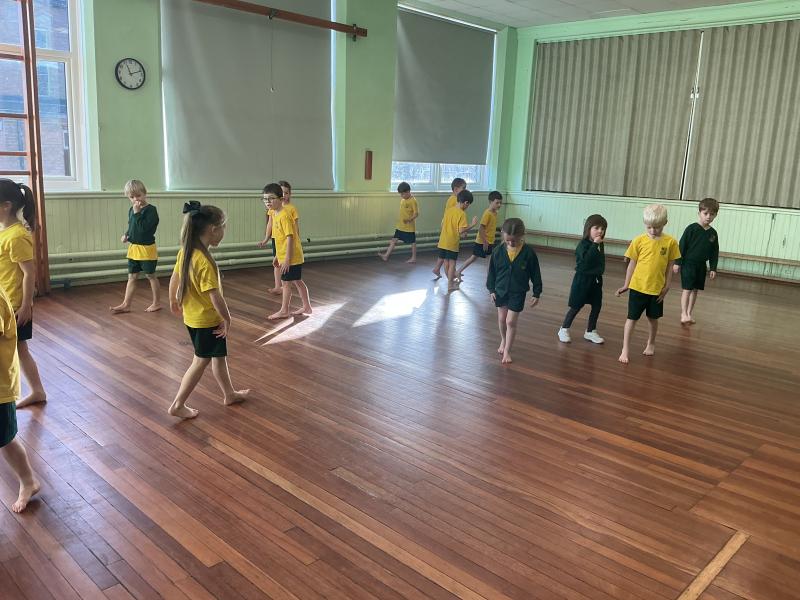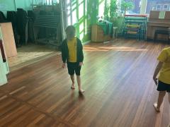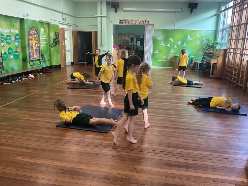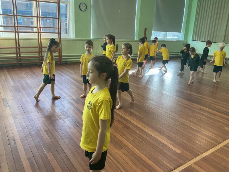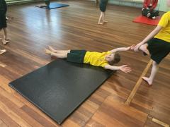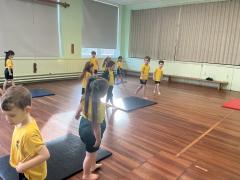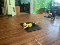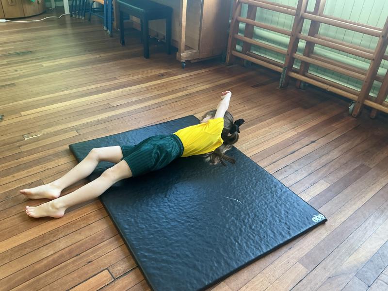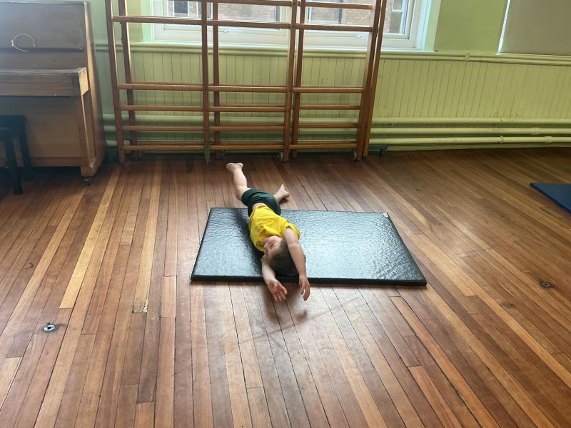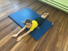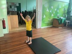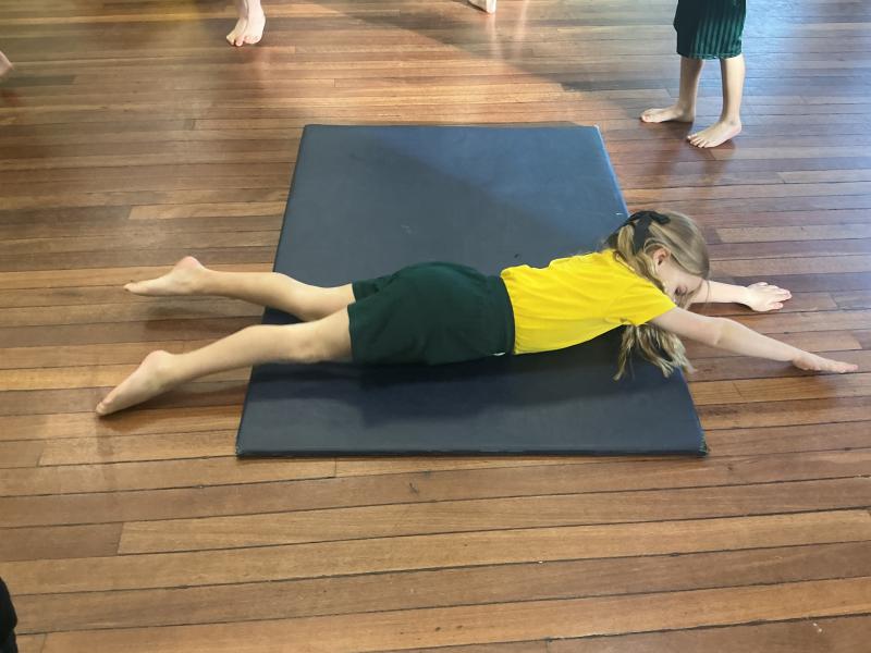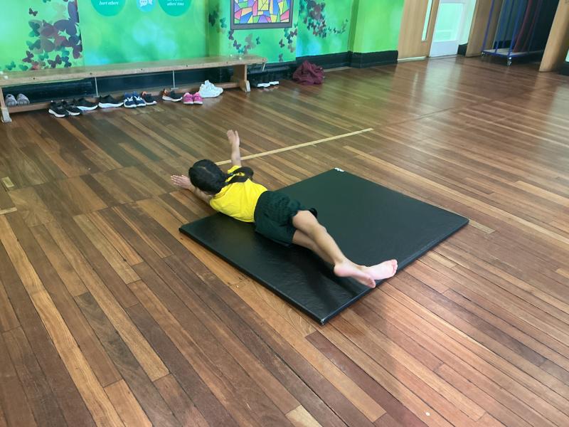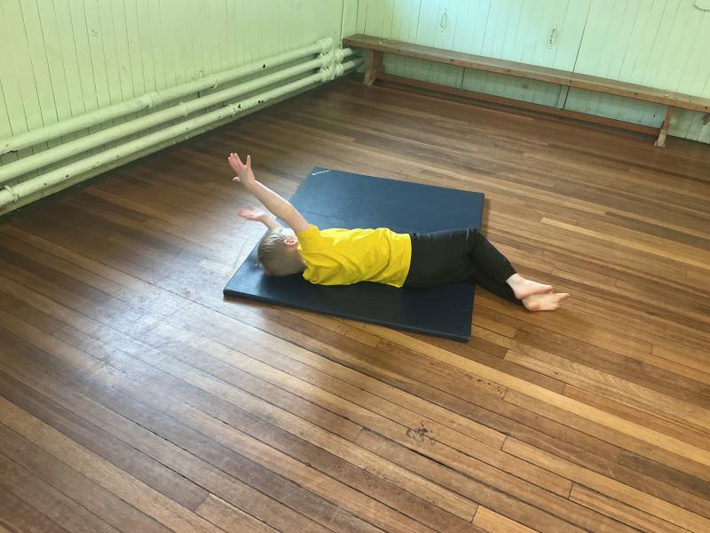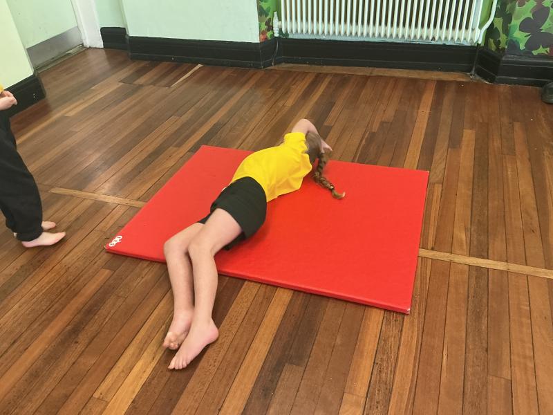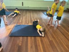 We learnt how to walk like a gymnast, do a straight jump and a pencil roll.
