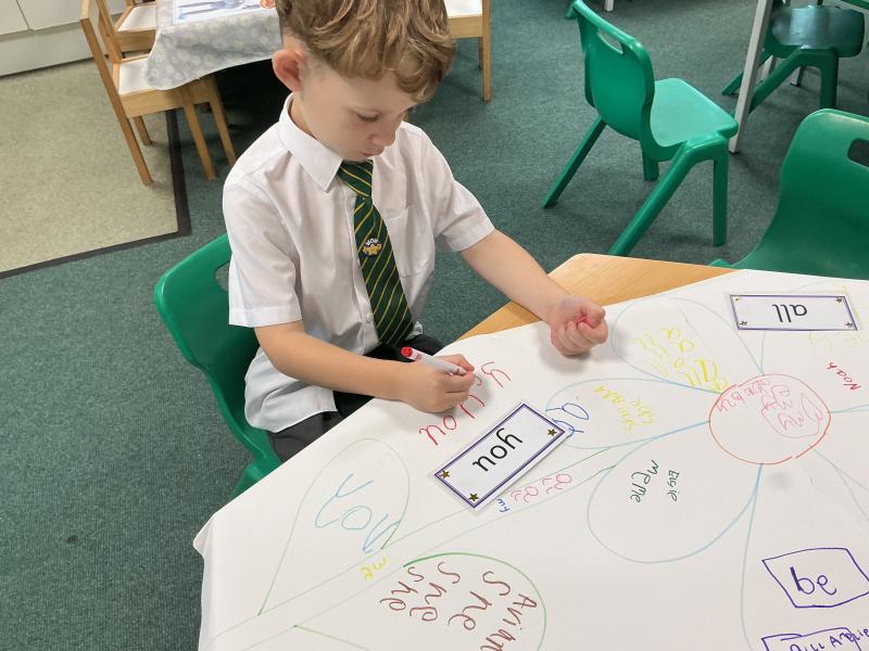We have been practising writing our tricky words. We made tricky word flowers.