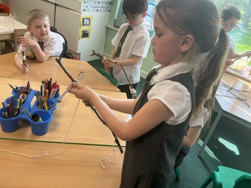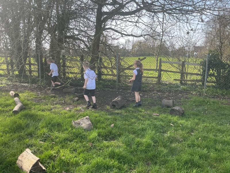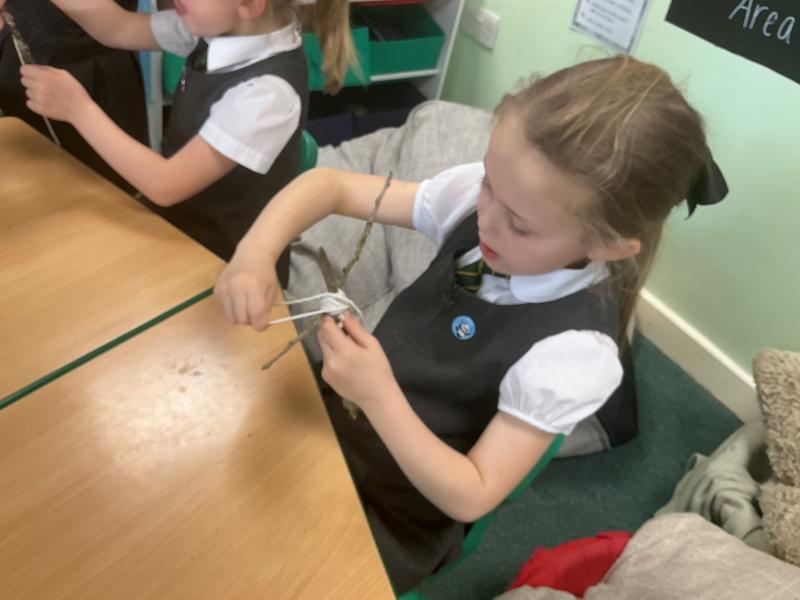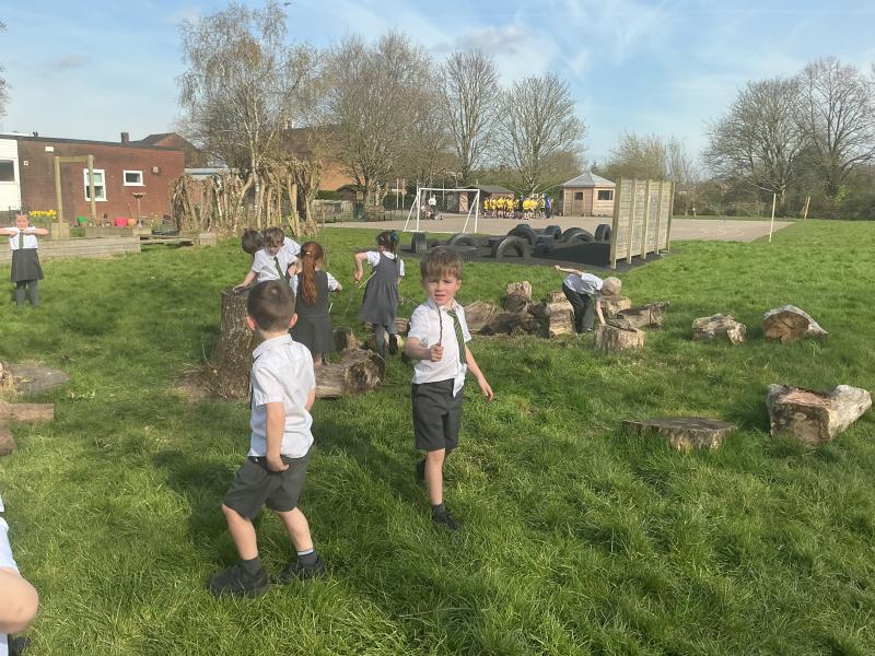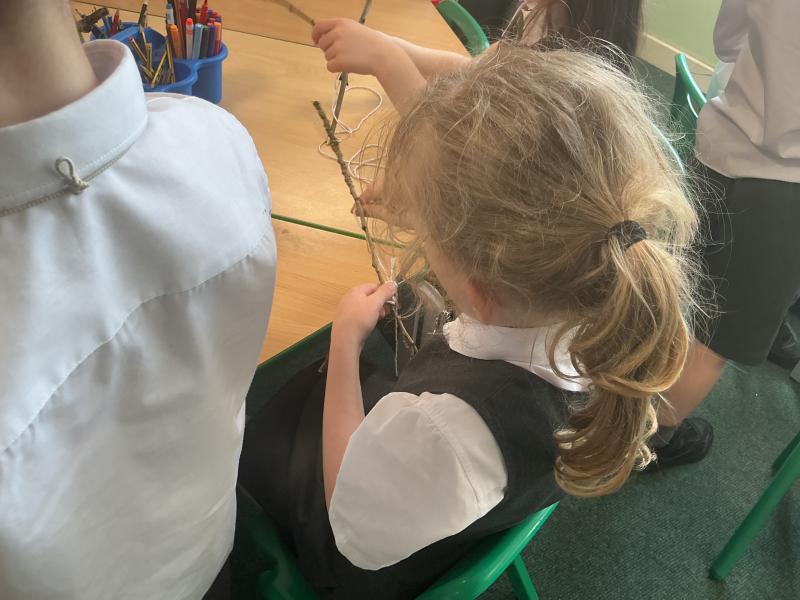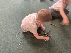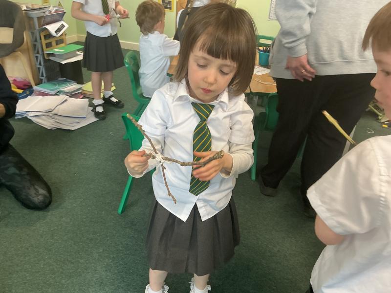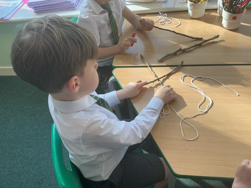 We went outside to collect sticks to make our own cross.