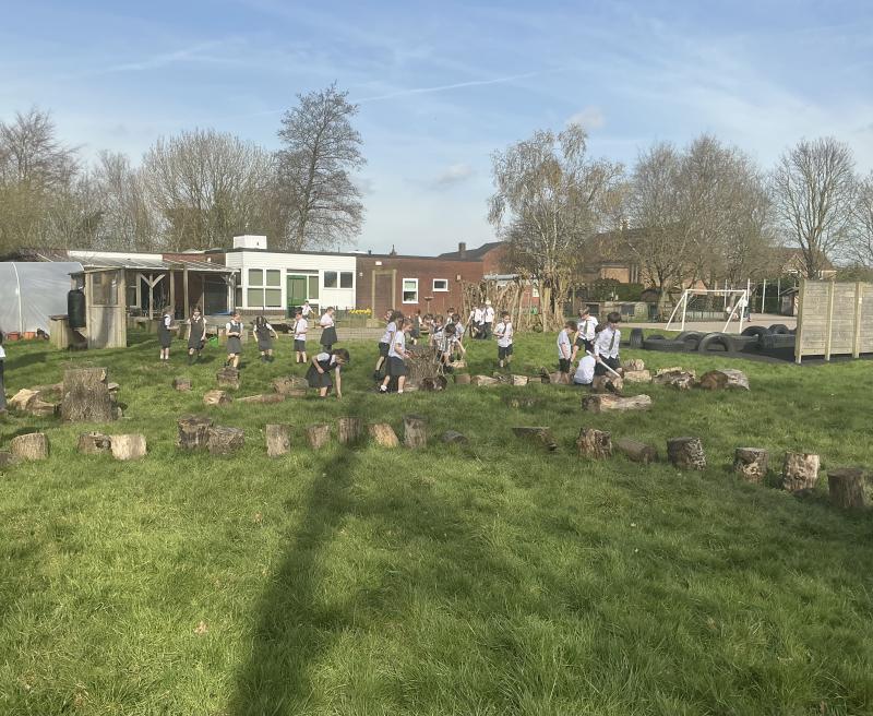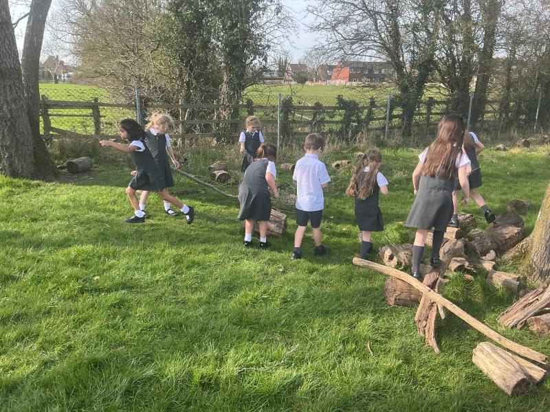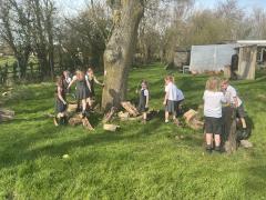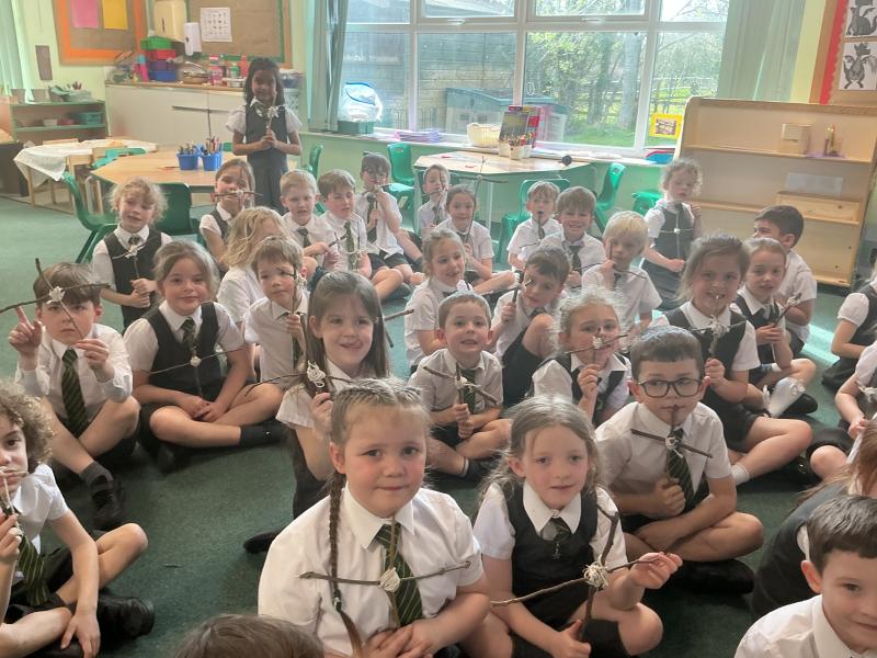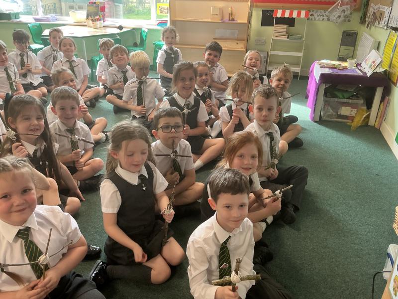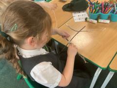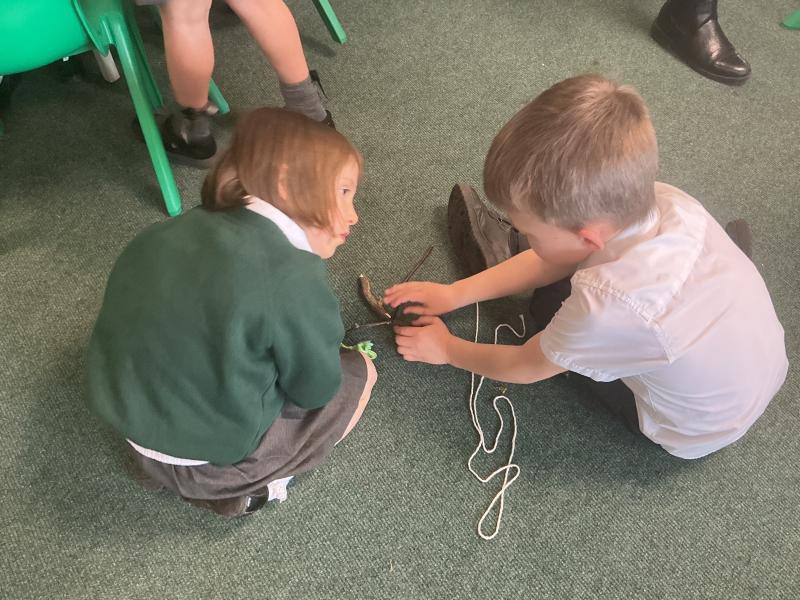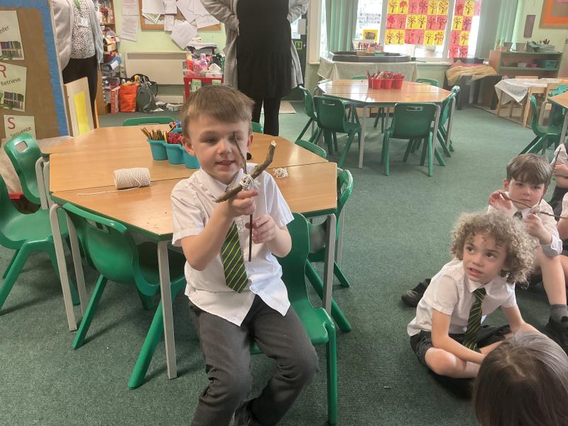 We went outside to collect sticks to make our own cross.