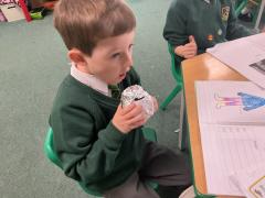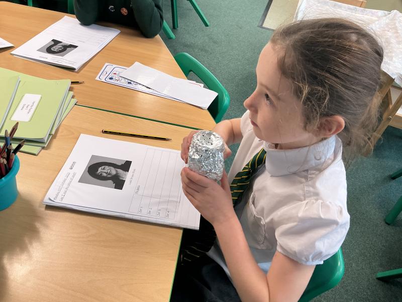 We conducted a smelling experiment. We had to guess which smells were in the jar!