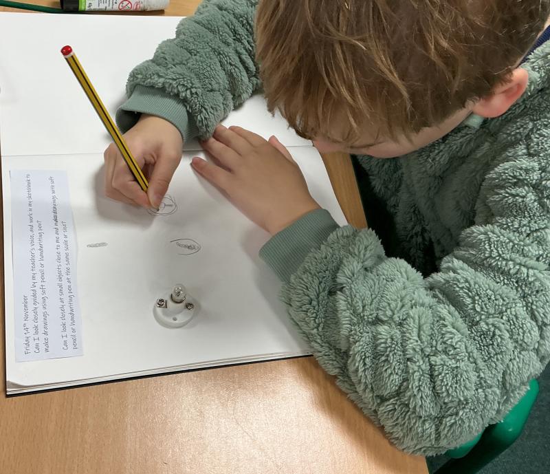 We learnt about small drawing this week. We carefully looked at small objects and drew them in pencil. We thought carefully about how our wrists move when drawing and how important it is to keep looking at what we are drawing.