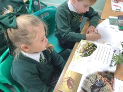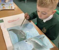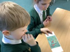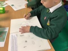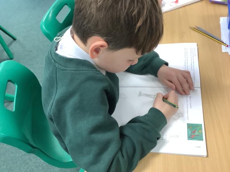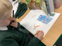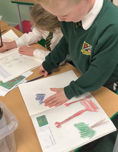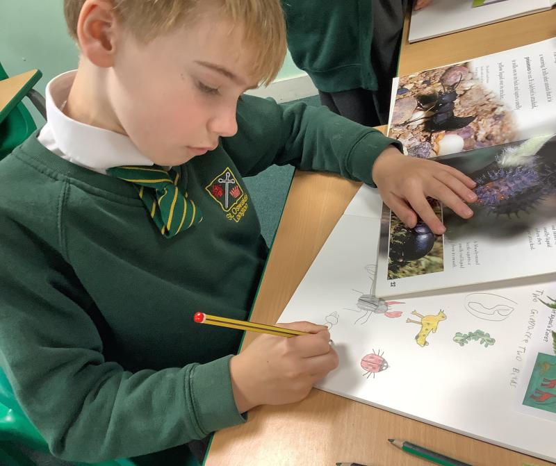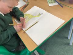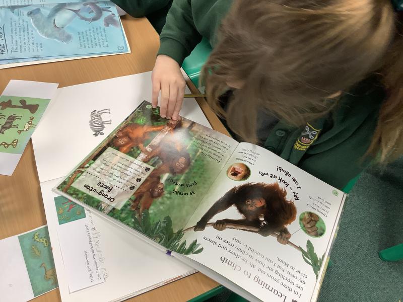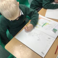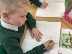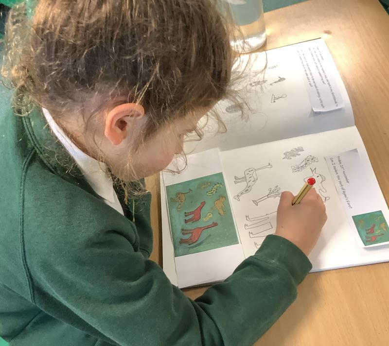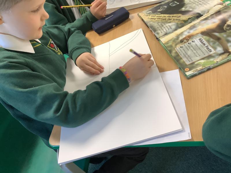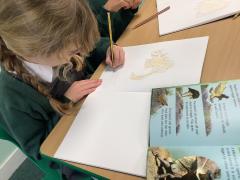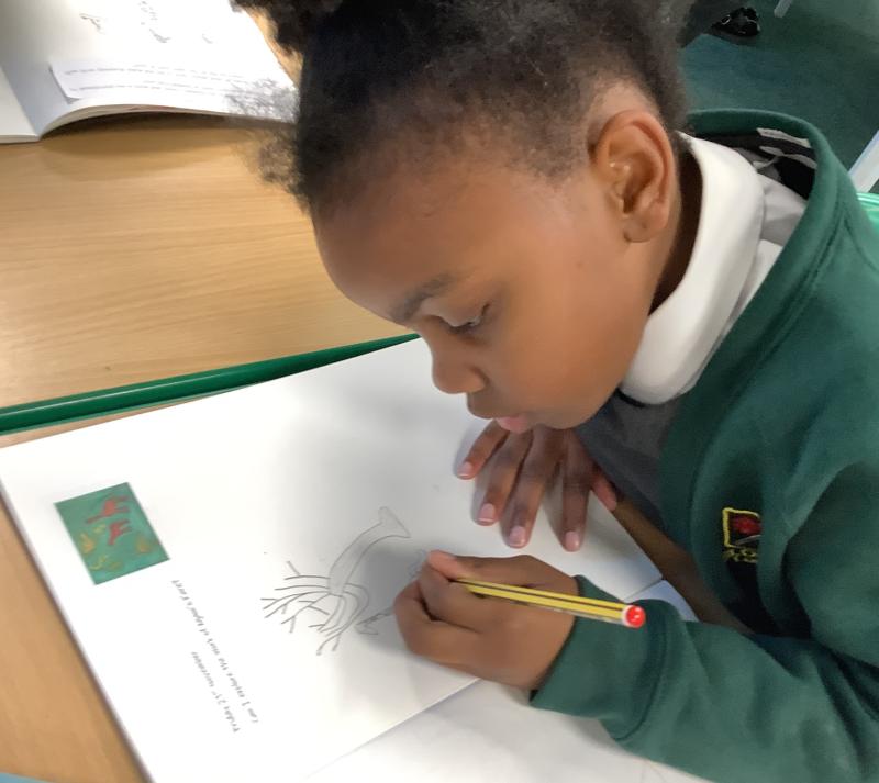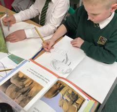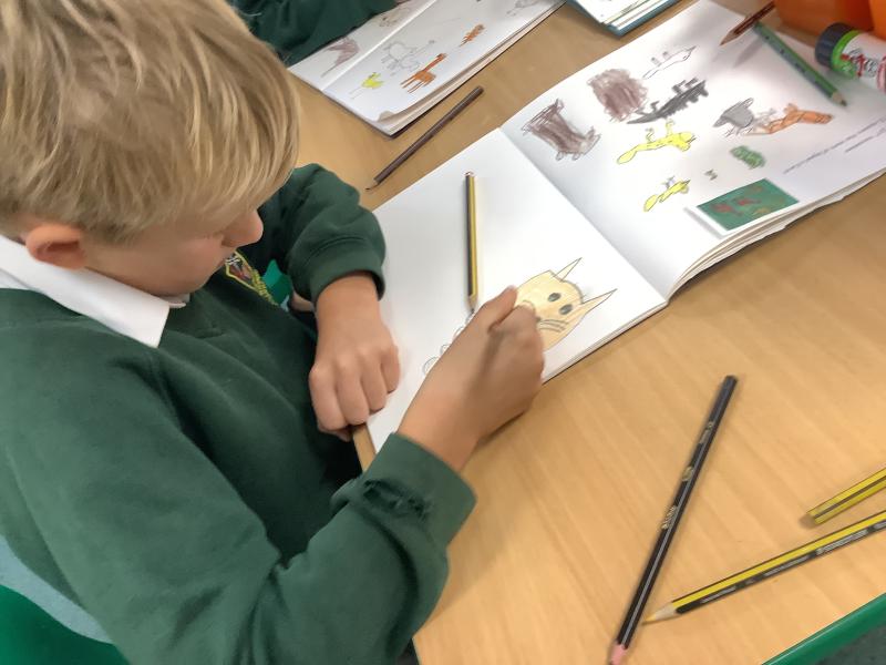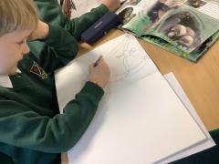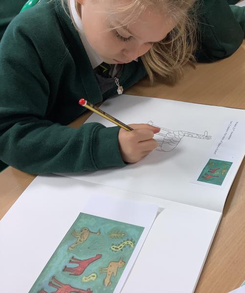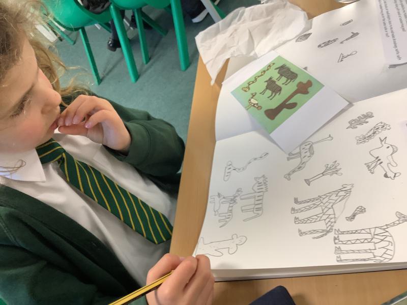 We looked at the work of a Botswanan printmaker called Xgaoc'o X'are. We then did our own animal drawing in his style, using animal books from the library for inspiration.