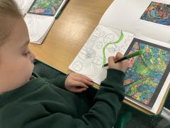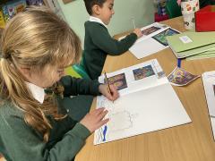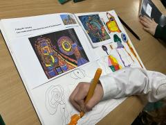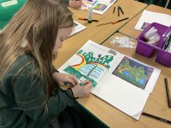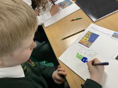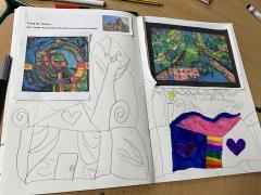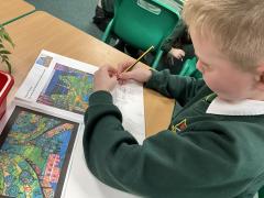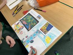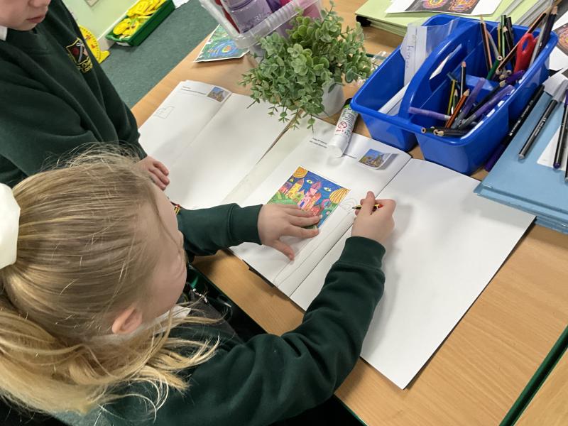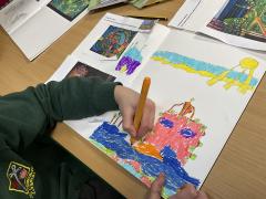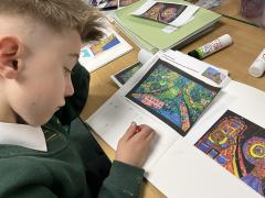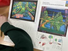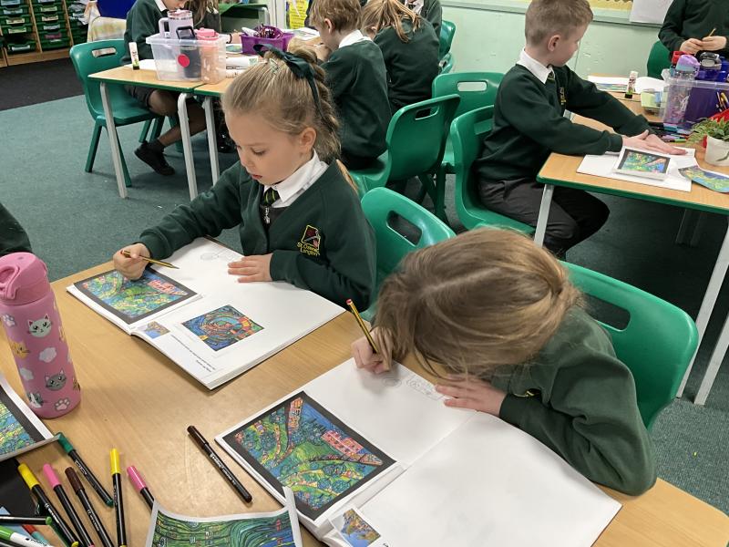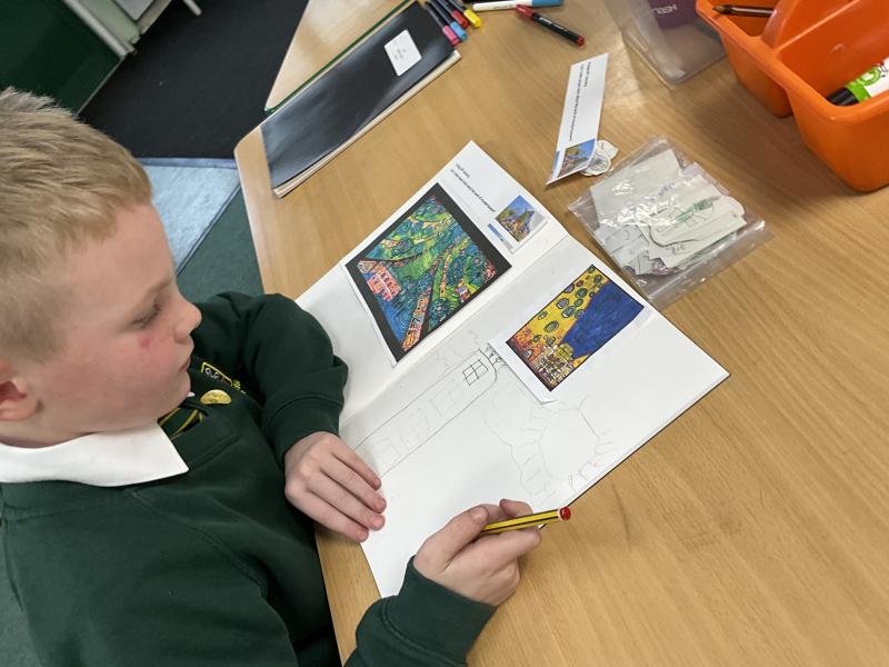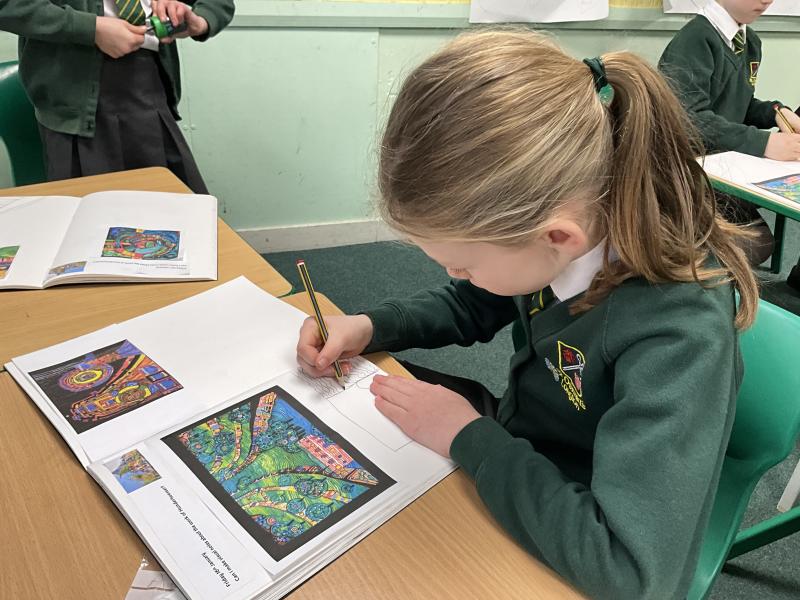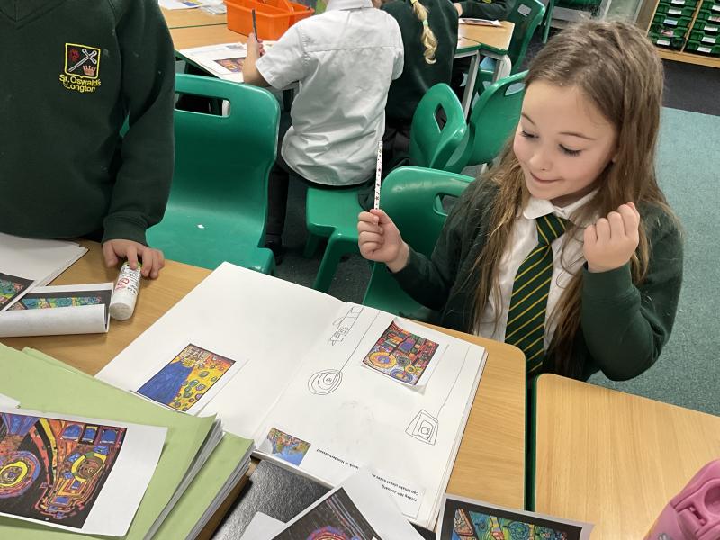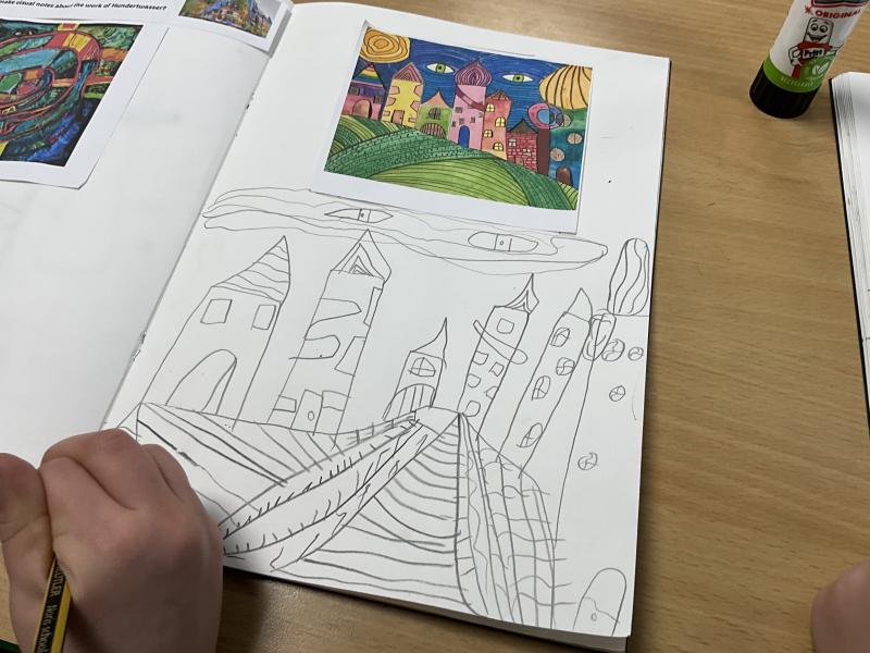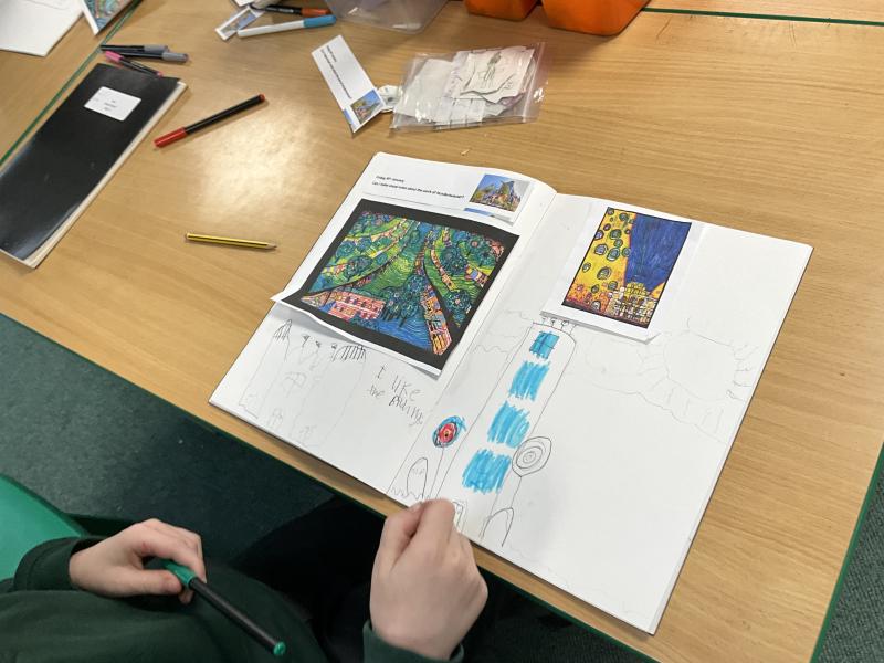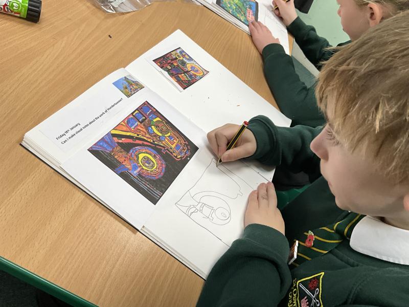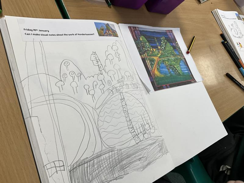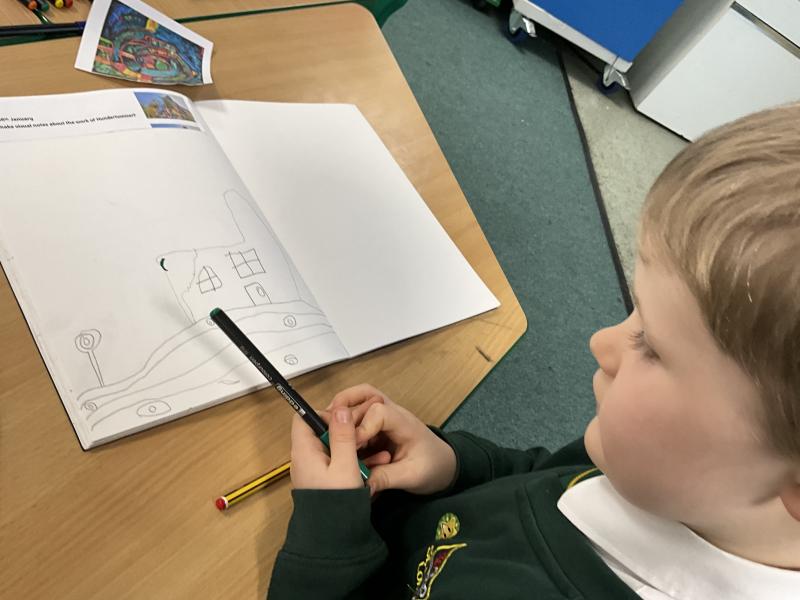 This week, Year 2 explored the colourful and imaginative artwork of Friedensreich Hundertwasser. The children studied his use of bold colours, spirals, patterns and curving lines, noticing how he avoided straight lines and symmetry. They created visual notes in their sketchbooks, experimenting with spirals, buildings and repeated patterns to understand his distinctive style. Using these ideas, the children then produced their own Hundertwasser-inspired artwork, combining vibrant colours with imaginative designs. Everyone showed creativity, confidence and focus, and they were proud to share and talk about their finished pieces.