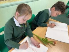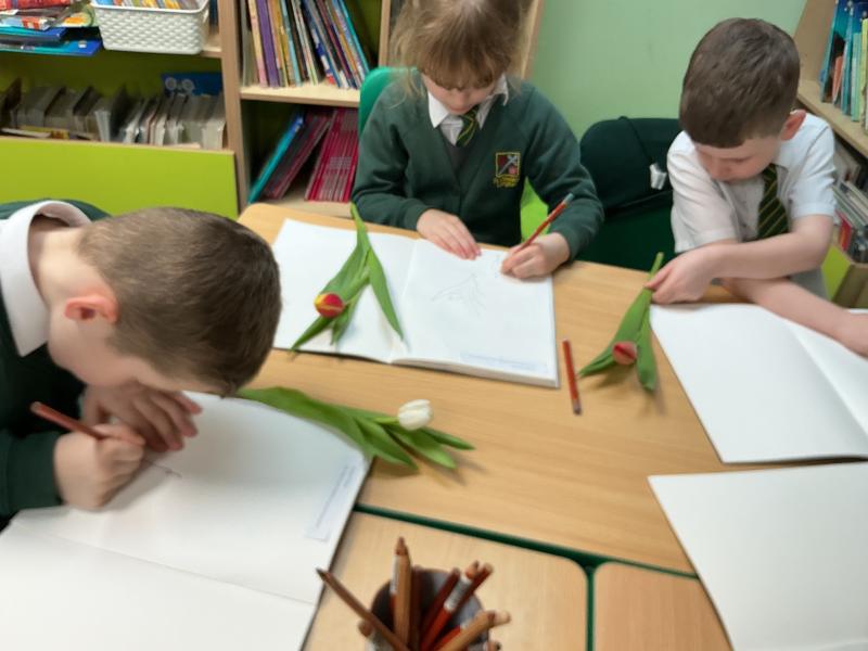 We sketched tulips and did some colour mixing in preparation for our Mother's Day cards.