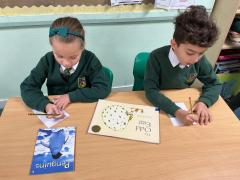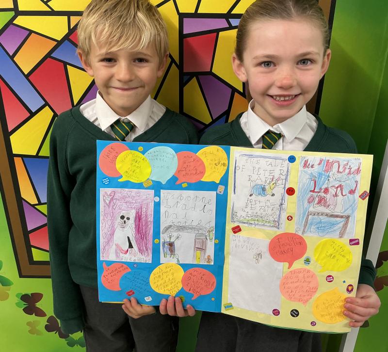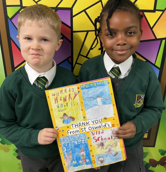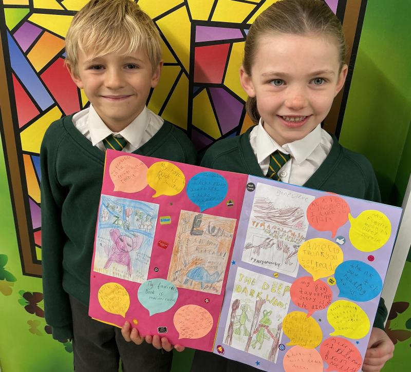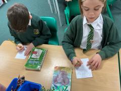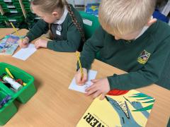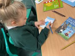 We made a thank you card for all the staff at the library. We had a brilliant session there last week. We drew the front cover of our favourite book and wrote some messages too.