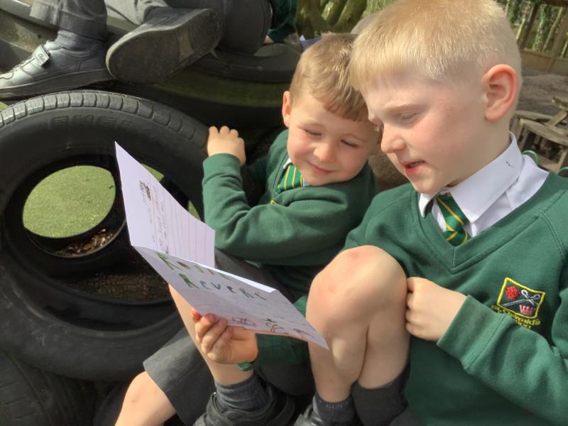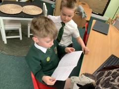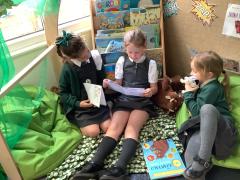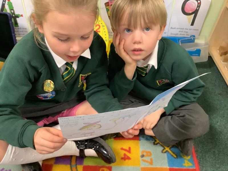 We retold the story of Rosie Revere Engineer and read our books to the children in Reception.