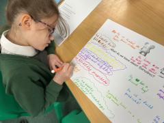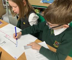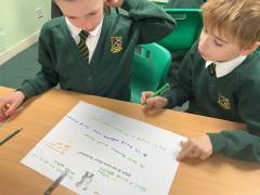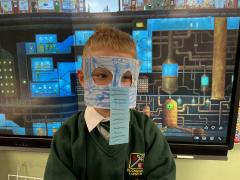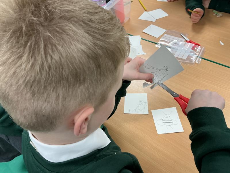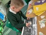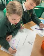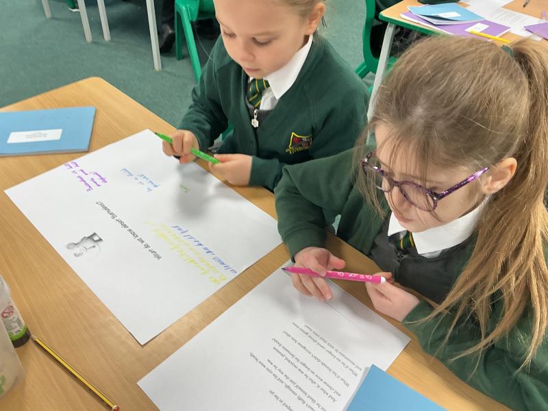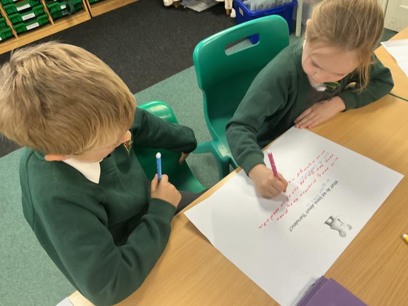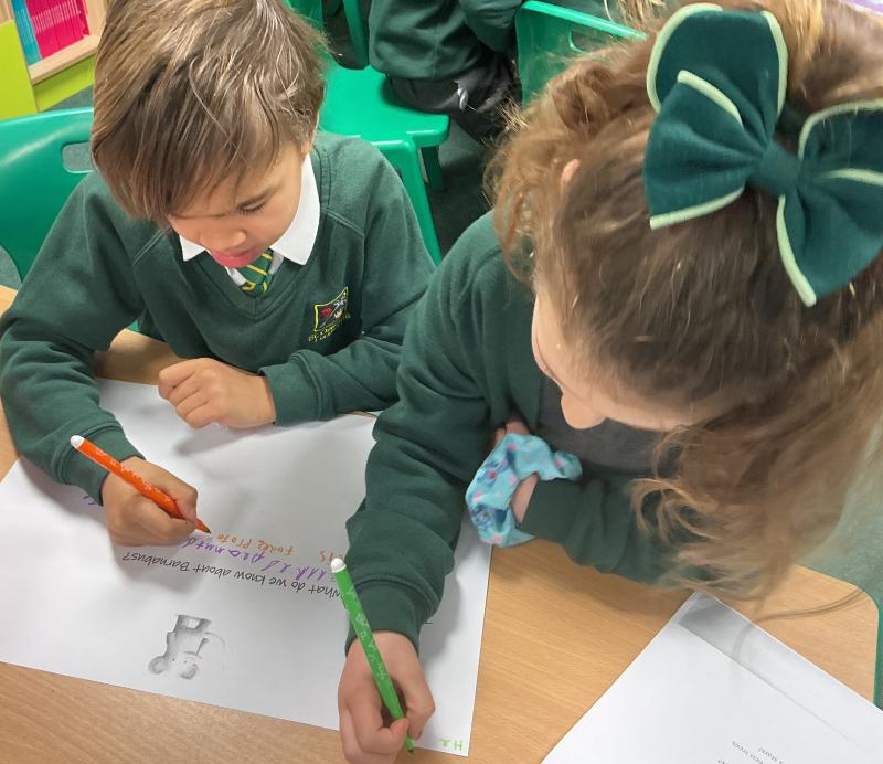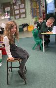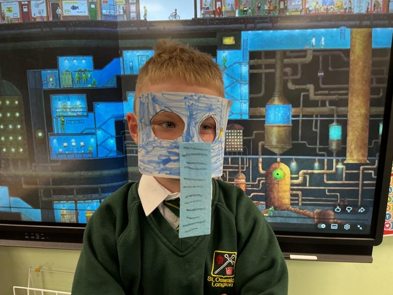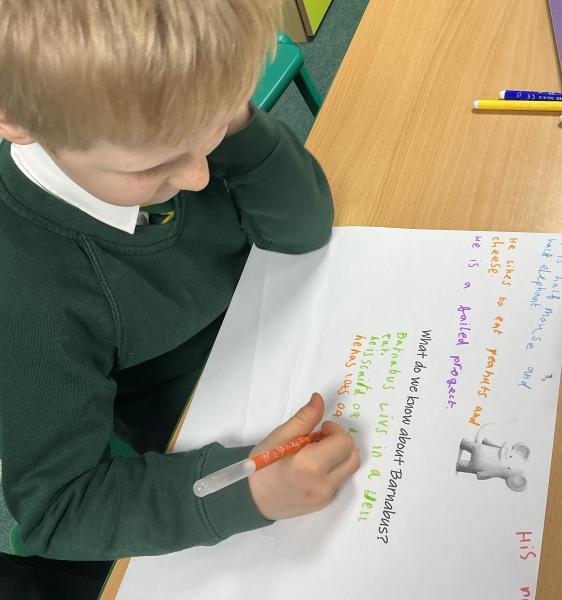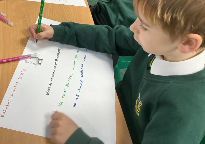We continued to learn through the story of The Barnabus Project. We worked together to produce some fact sheets showing what we know about Barnabus. We made some puppets which we used to re-tell the story. We wrote in role as Barnabus and explained how we felt about living in a bell jar in the lab. We also wrote some instructions for the jobs the Green Rubber Suits have to do during the day.
