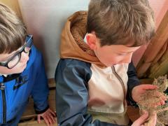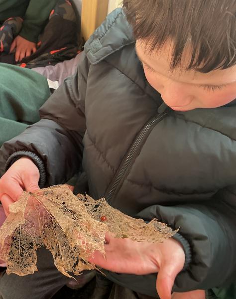 We also found some sketeton leaves and discussed how they become like this. There was even a ladybird on one of them!
