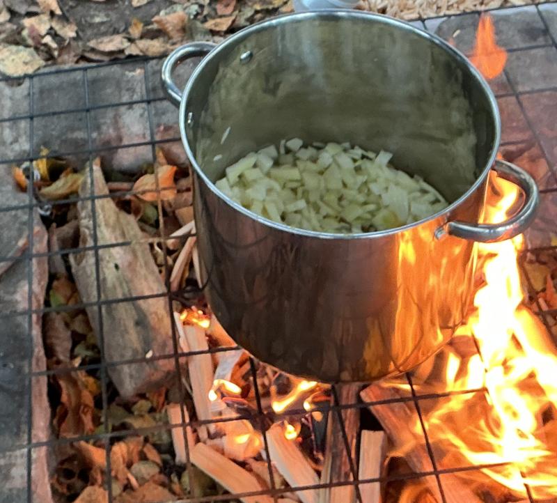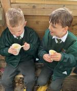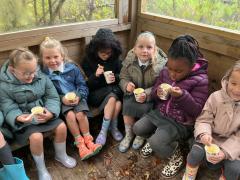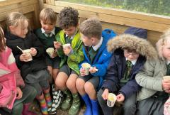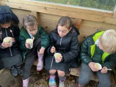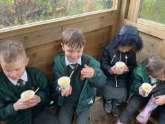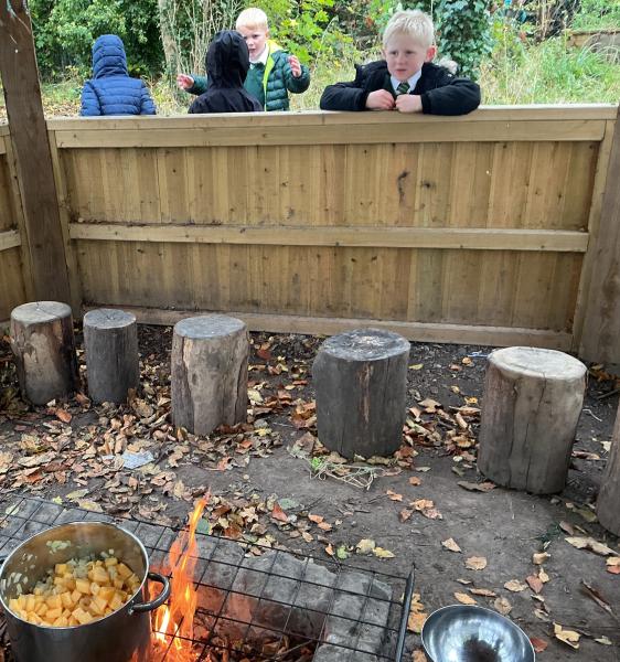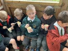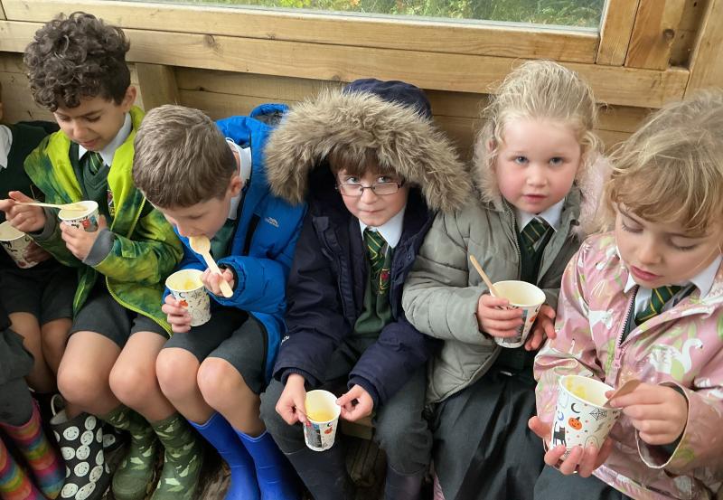 Mr Corbett Jr, who is a chef, came in to help us make pumpkin soup. It was a wet and windy afternoon but we didn't mind!