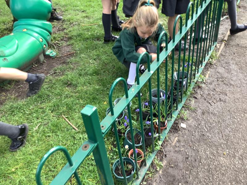 We looked at the bulbs we planted in January. Some have flowers, some have leaves and some are not growing at all. We discussed why this might be happening.