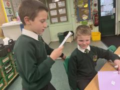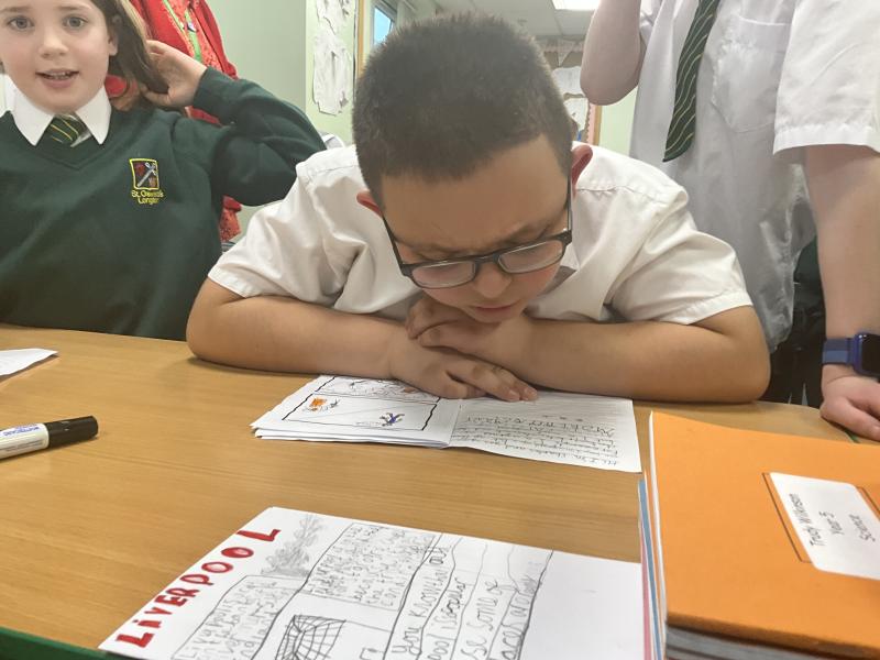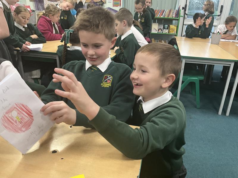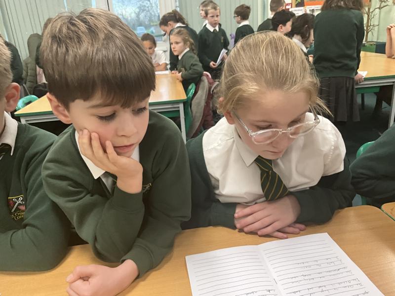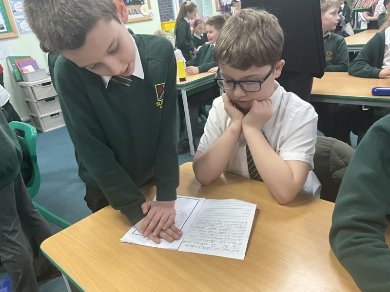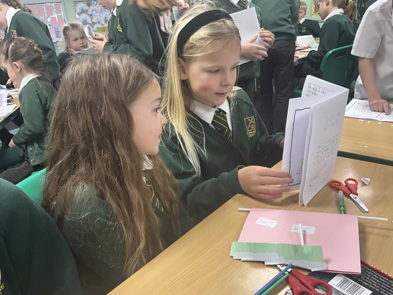 Once our stories were finished, we had the brilliant opportunity to share them with others. The children visited Year 2 and Year 5 to read their work aloud, practising clear reading voices, expression and confidence. It was lovely to see how proud they were to share their writing and how engaged the other children were when listening.