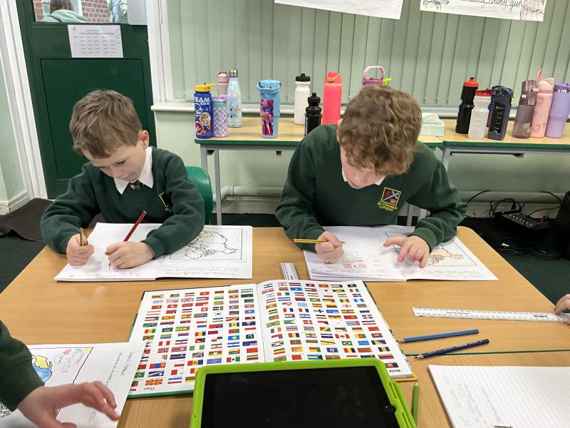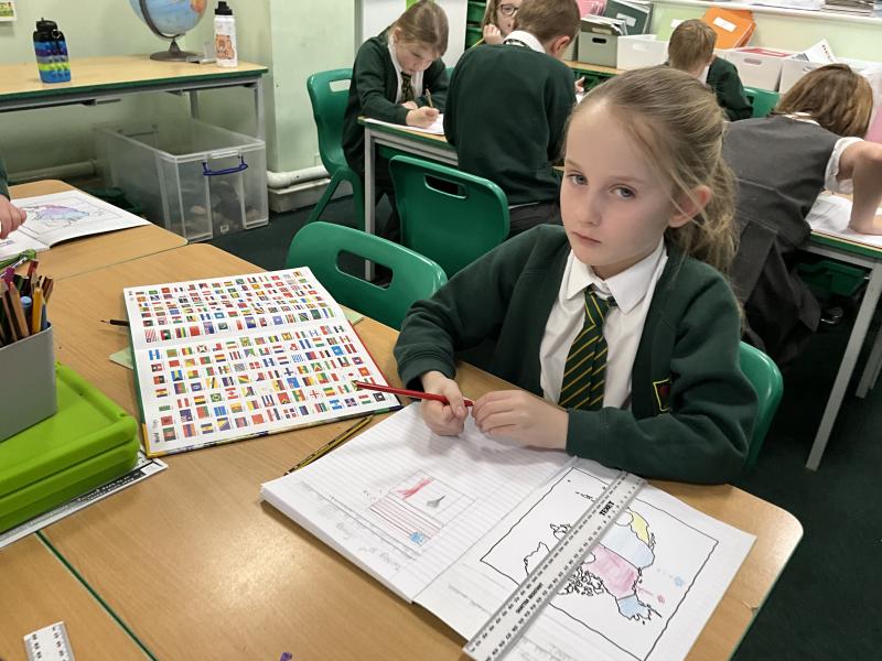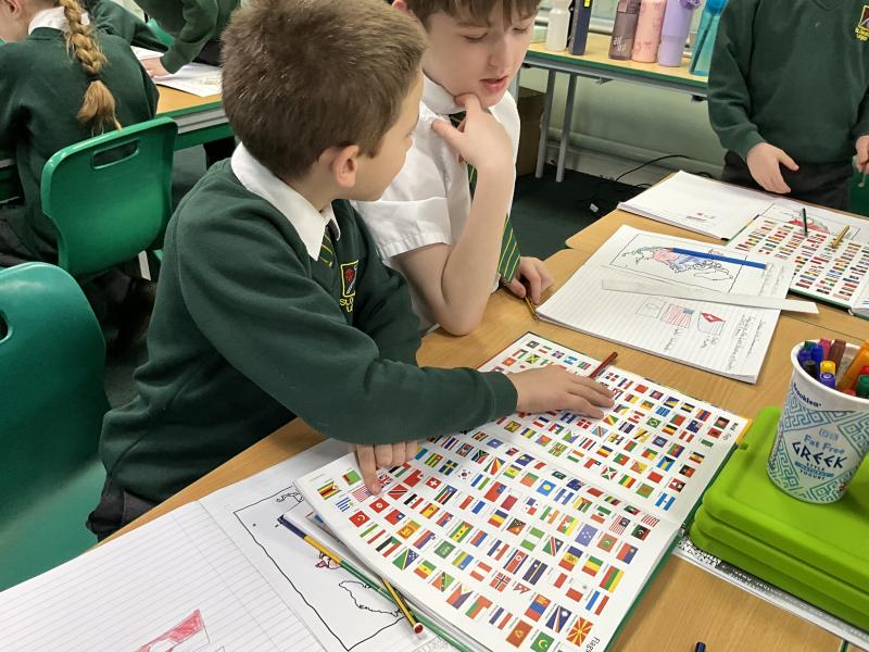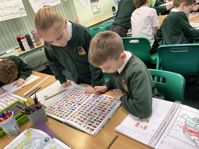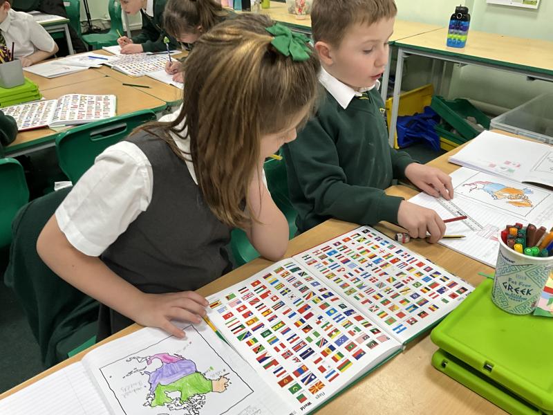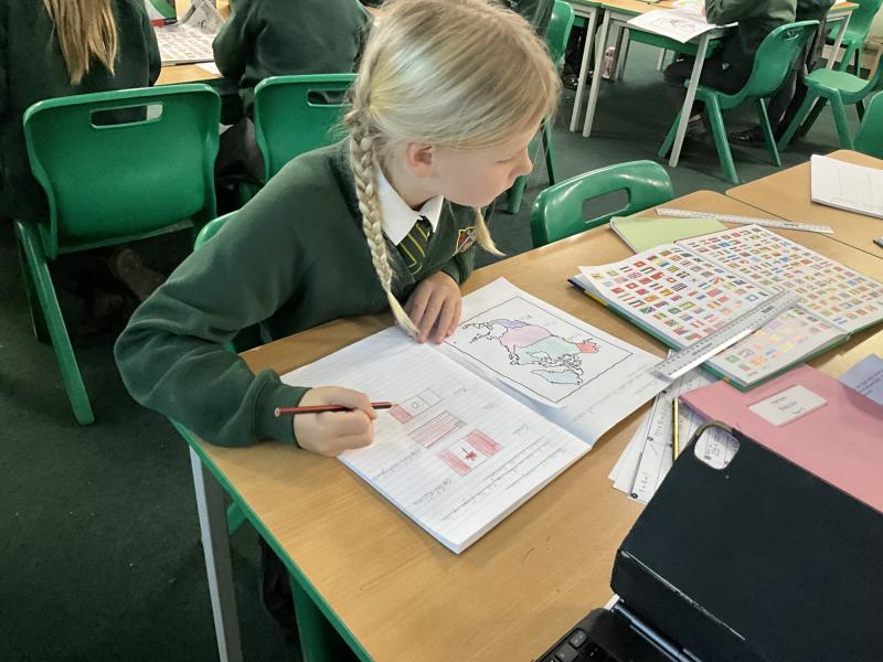 In Geography, we explored atlases to learn more about North America. We carefully located and identified the flags for the 23 countries within the continent, developing our understanding of where each country is positioned. We then used the atlases to find and record the capital cities of these countries, practising key map skills such as using contents pages, indexes and grid references. This helped us build confidence in using atlases independently while deepening our geographical knowledge of the continent.
