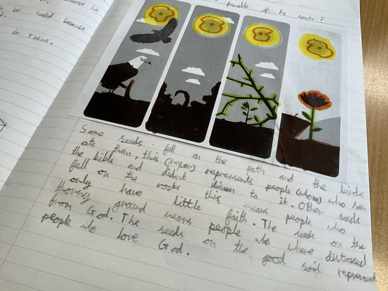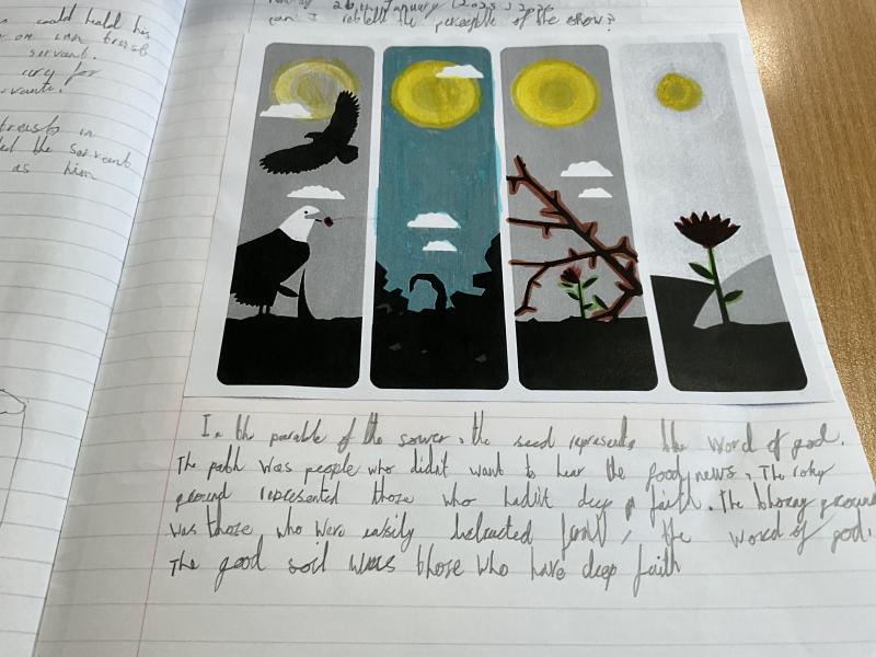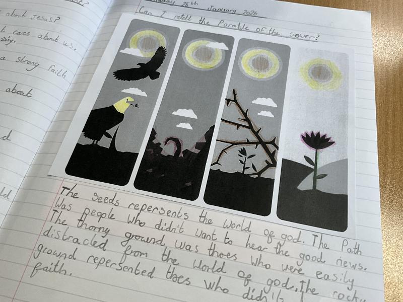 We explored the Parable of the Sower and discussed the meaning behind Jesus’ teaching. The children learned how the different seeds represent how people respond to God’s word and reflected on how they can grow in faith. Their work shows thoughtful understanding of the message Jesus shared through this parable. We also read the parable of the pearl and the treasure and talked about the significance of Jesus' message.