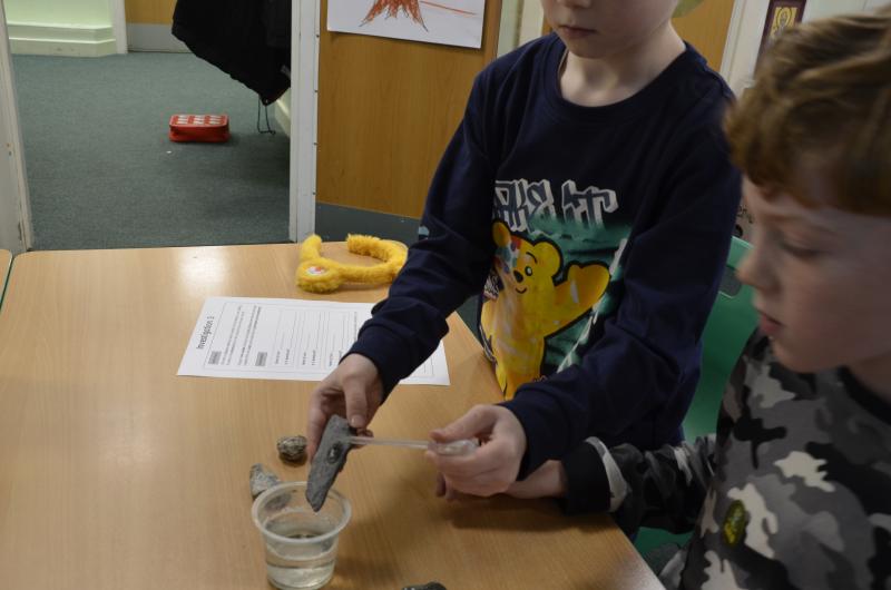 Today we tested rocks and their properties. We tested hardness, durability and impermeability to see which rocks would be best for a worktop, a skatepark and a roof. Super science!