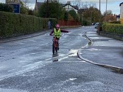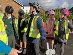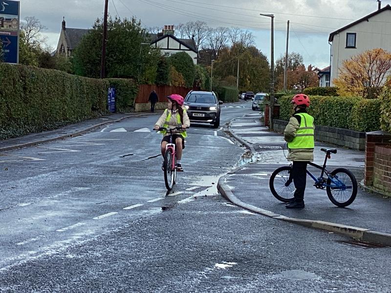 Year 6 worked hard on the roads to practise pass me position, follow me position and learn how to pass parked vehicles safely.