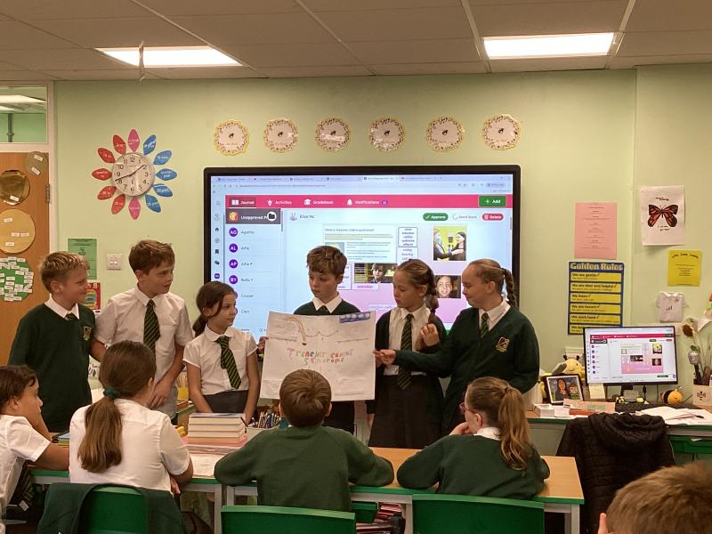 In English we researched all about Treacher Collins syndrome, which is the condition that Auggie has in wonder. We created posters and presented our research to the class.